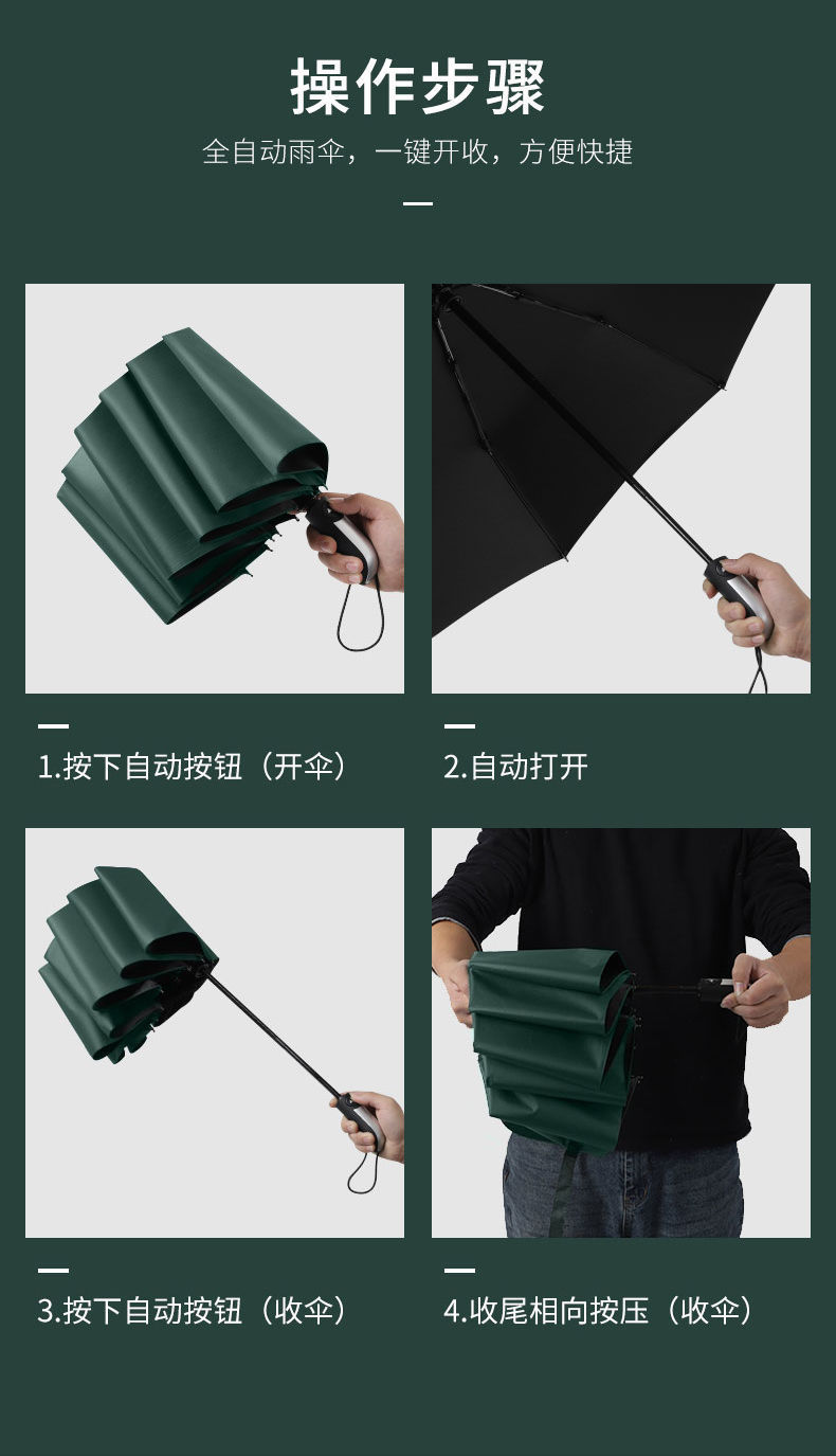 全自动黑胶雨伞小清新遮阳伞女高级感加固防晒晴雨两用折叠伞定制