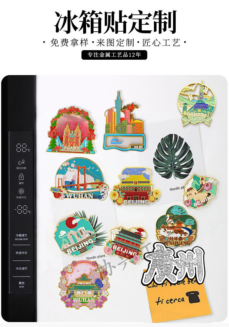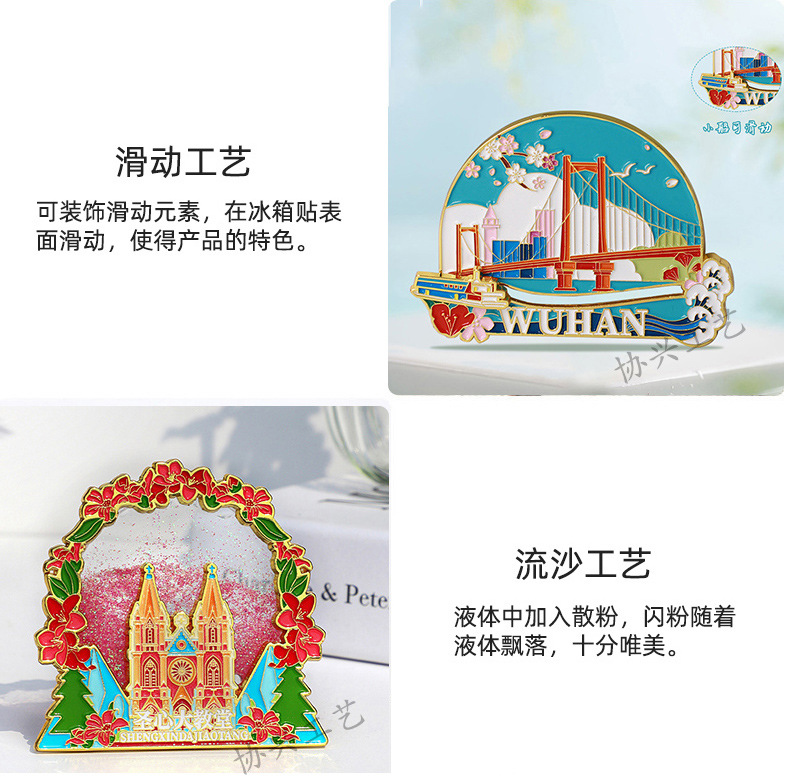 金属电镀烤漆滑动城市景区景点冰箱贴定制锌合金卡通伴手礼纪念品