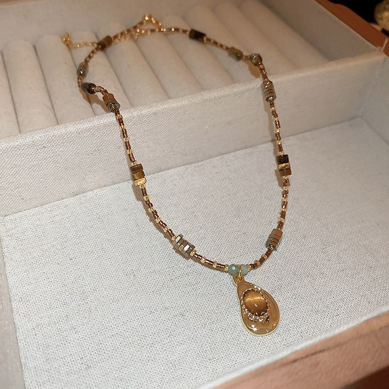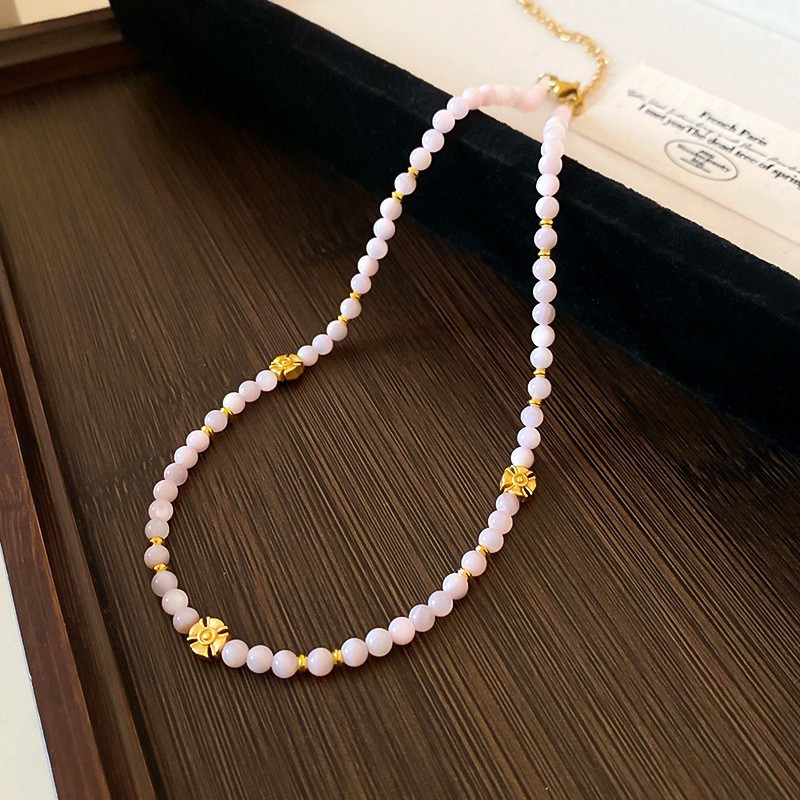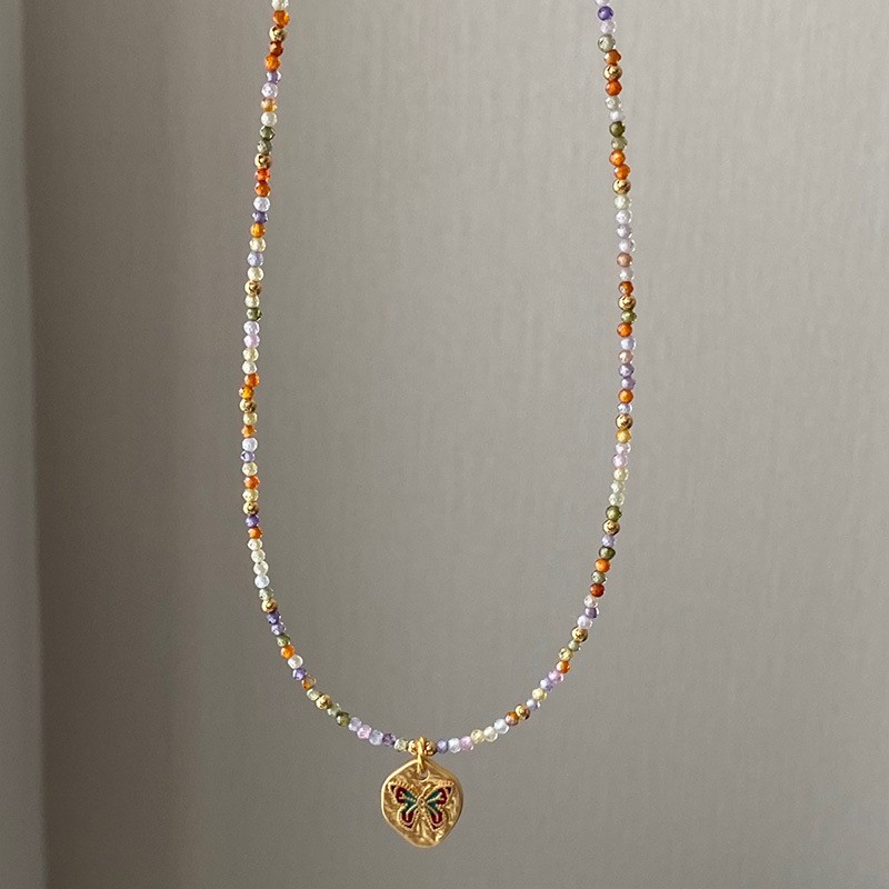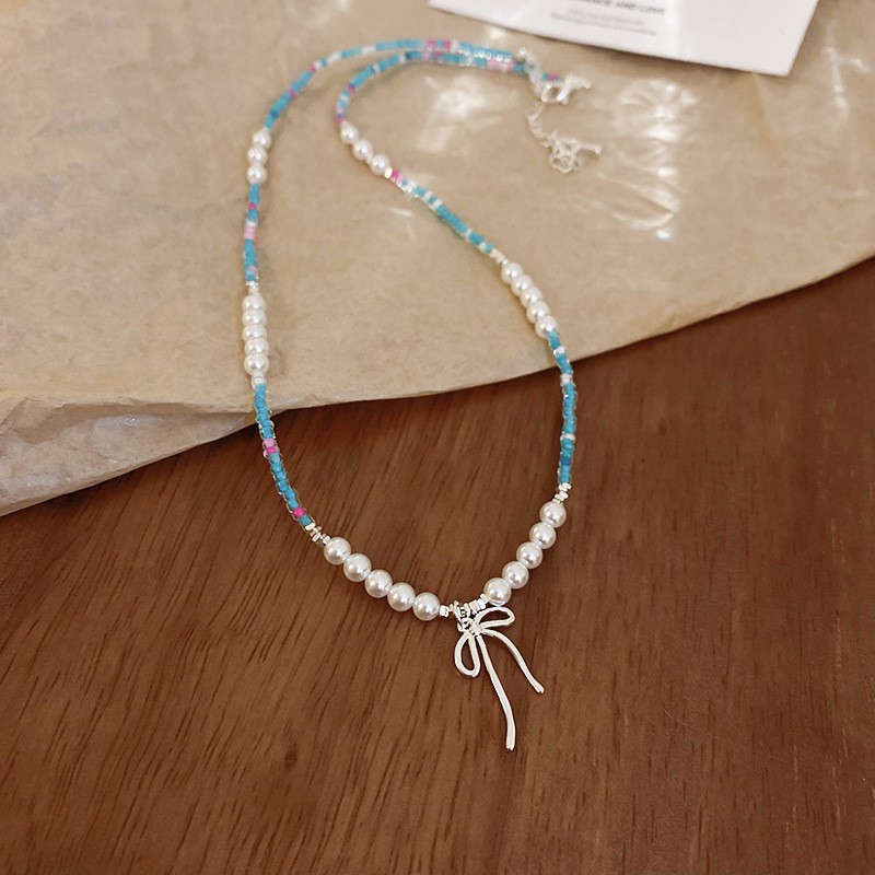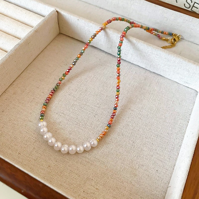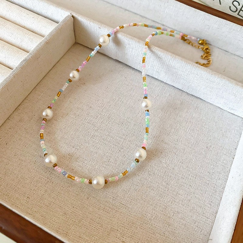 多巴胺米珠珍珠圆柱串珠项链时尚气质小众锁骨链个性百搭颈链女