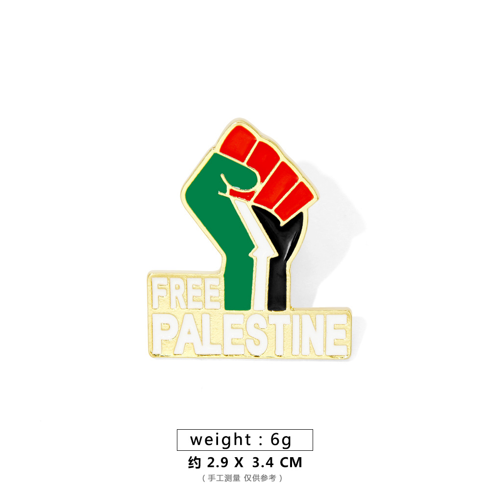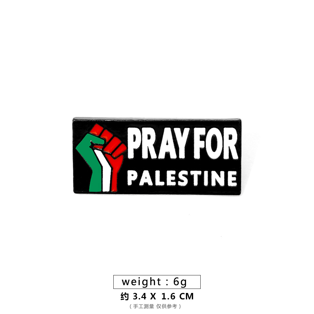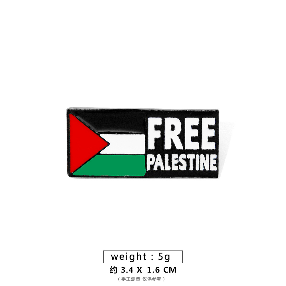 自由巴勒斯坦国旗胸针跨境批发徽章金属胸章服饰配件黑色旗帜扣针