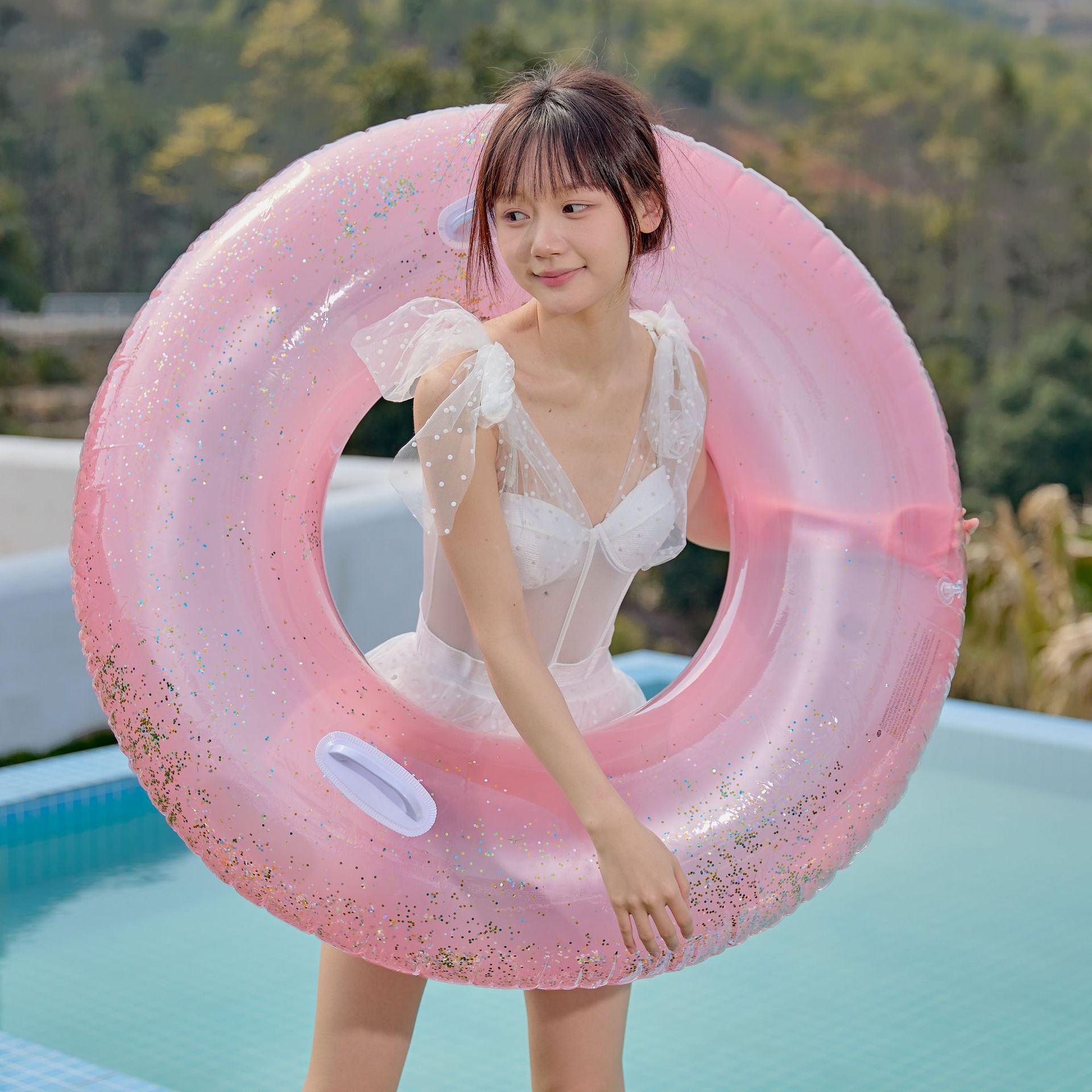 加厚成人甜甜圈亮片游泳圈 PVC充气坐圈 腋下圈 成人游泳圈批发