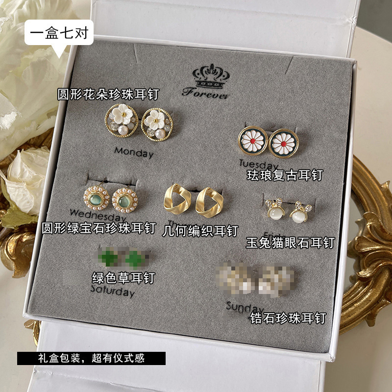 是七件套耳钉网红同款一周耳环耳饰七夕节套装耳环女高级感批发