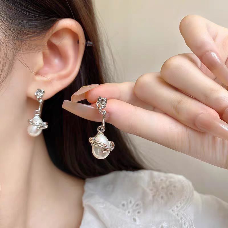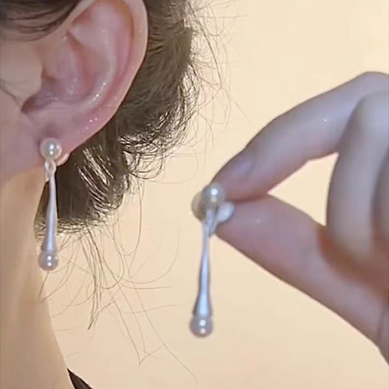 饰品小众长款流苏蝴蝶结耳环精致锆石耳饰S925银针气质珍珠耳钉女
