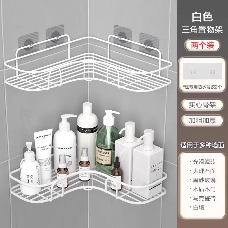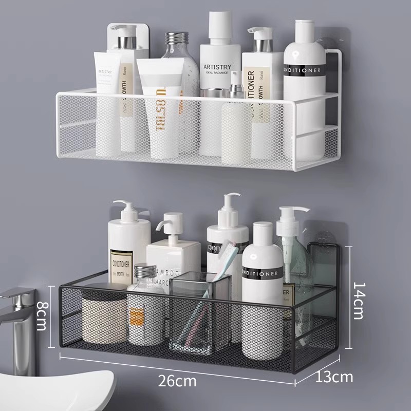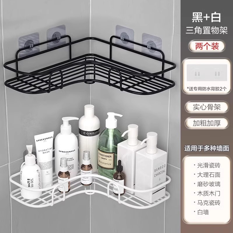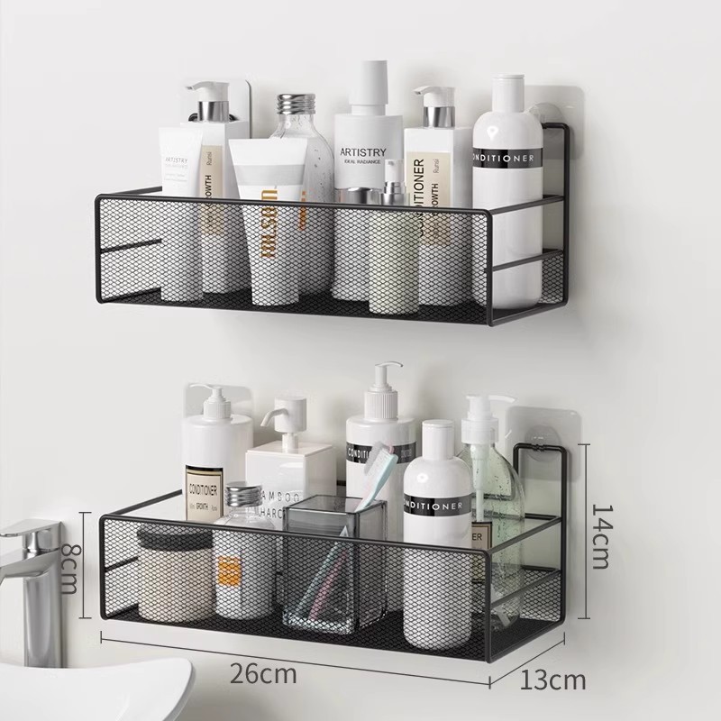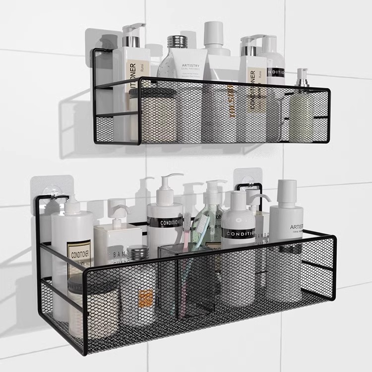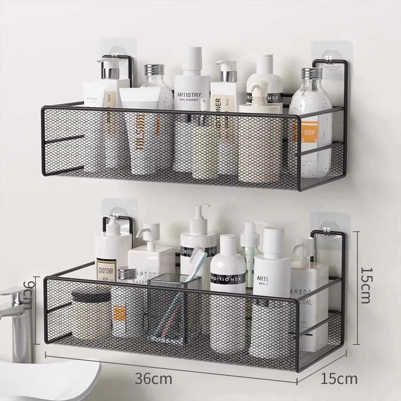 免打孔卫生间置物架浴室厨房铁艺收纳储物篮洗漱台厕所墙上壁挂式