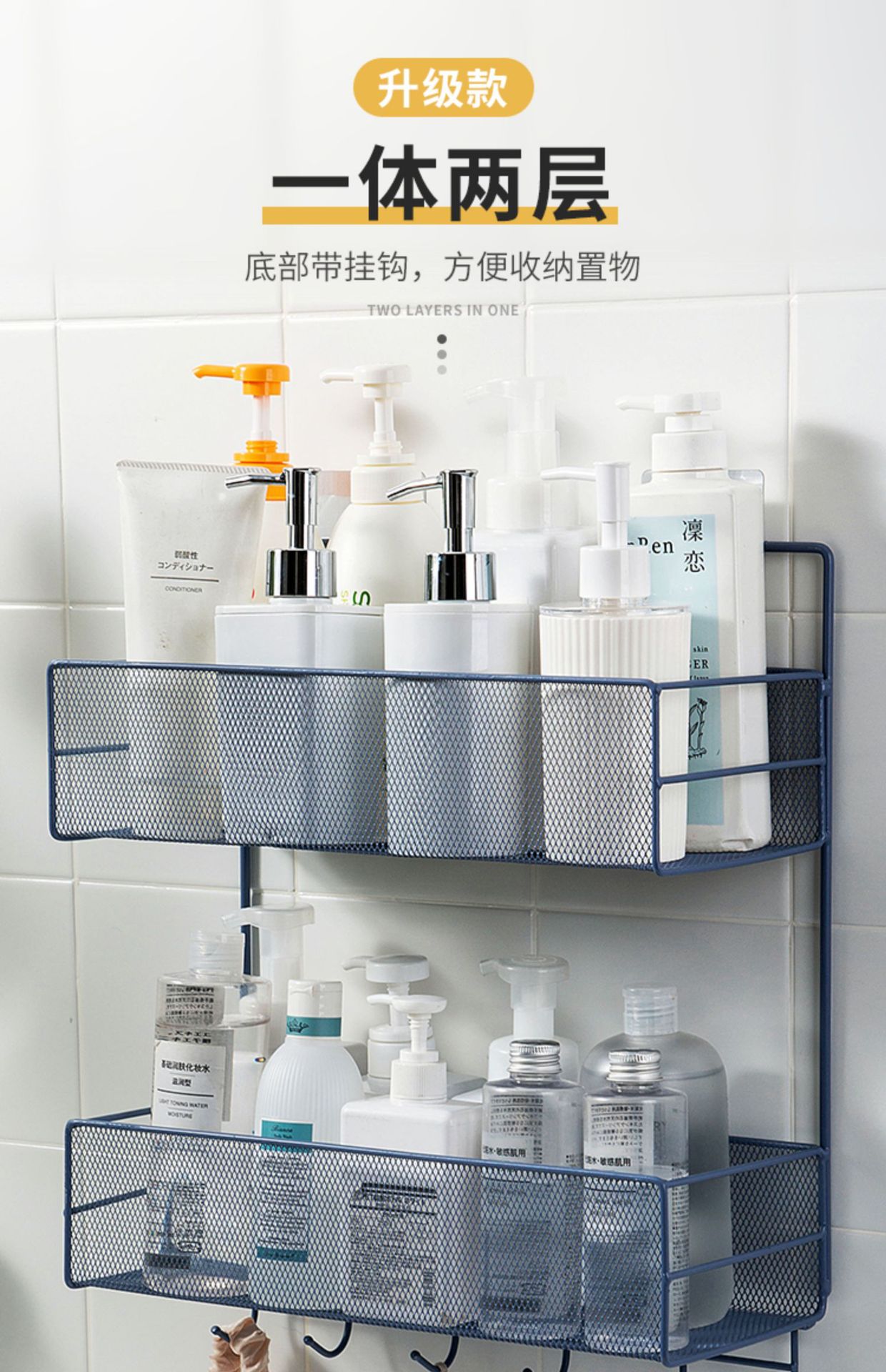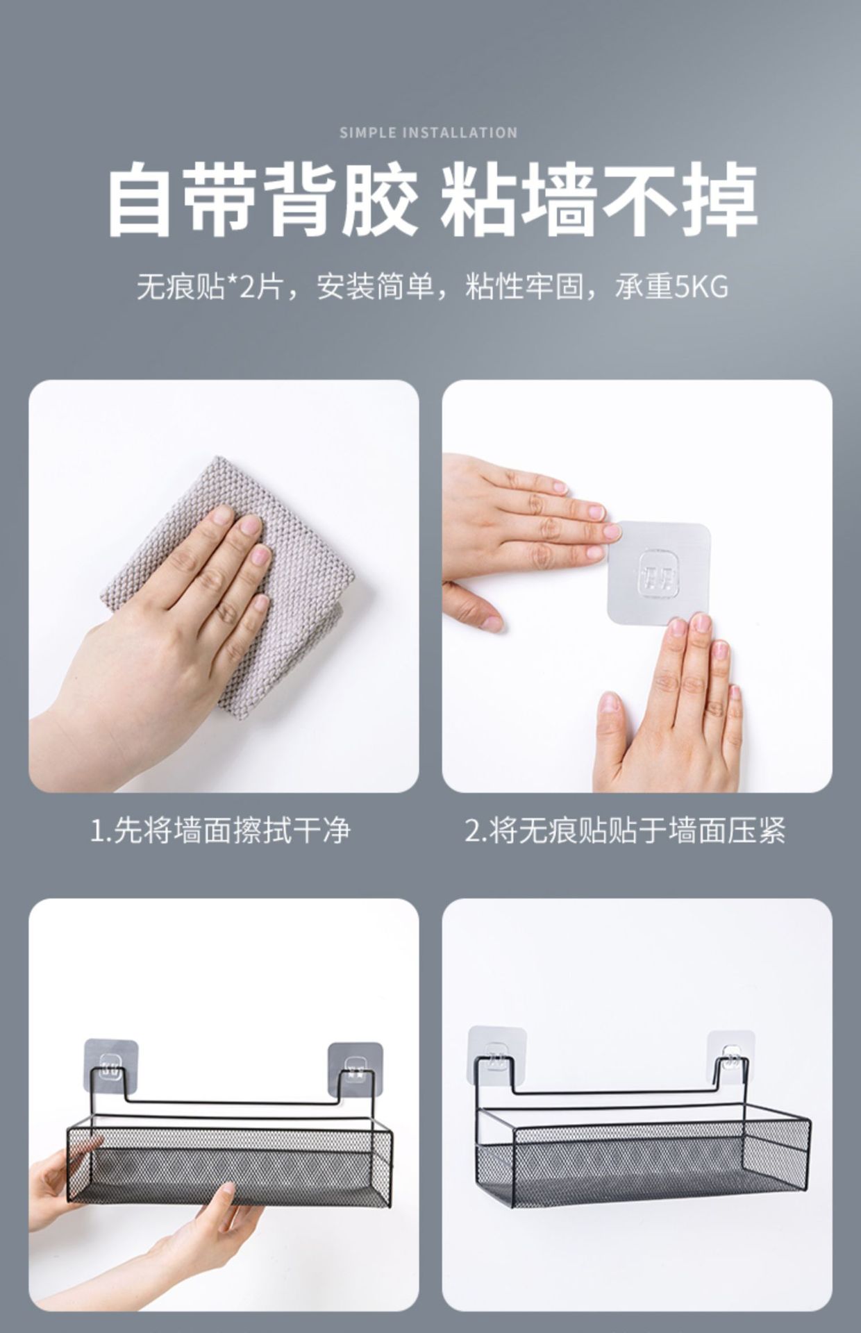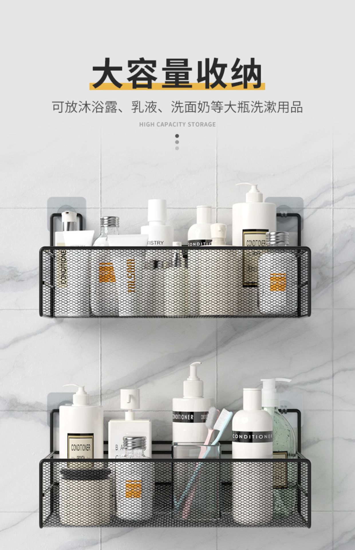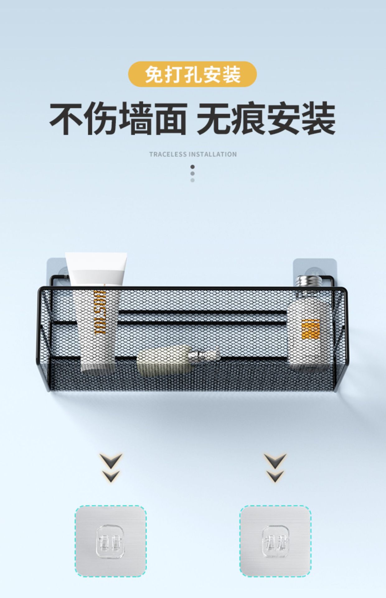 免打孔卫生间置物架浴室厨房铁艺收纳储物篮洗漱台厕所墙上壁挂式