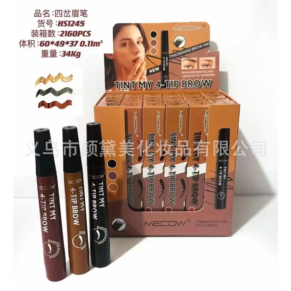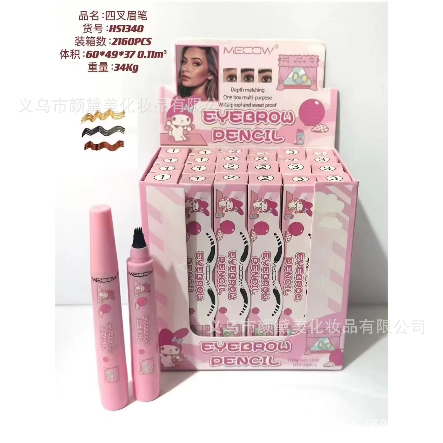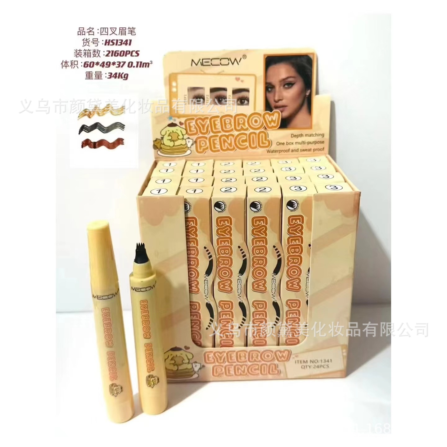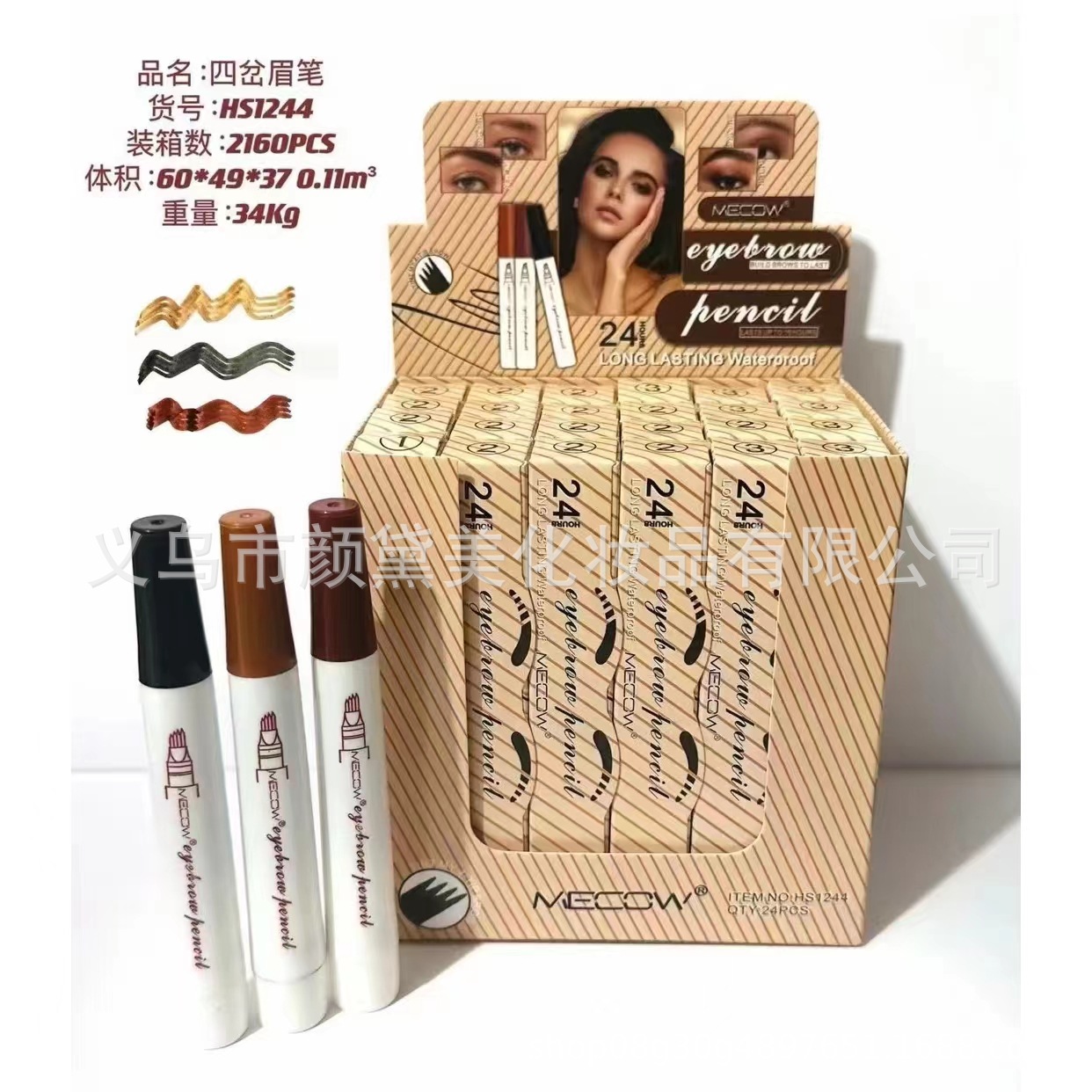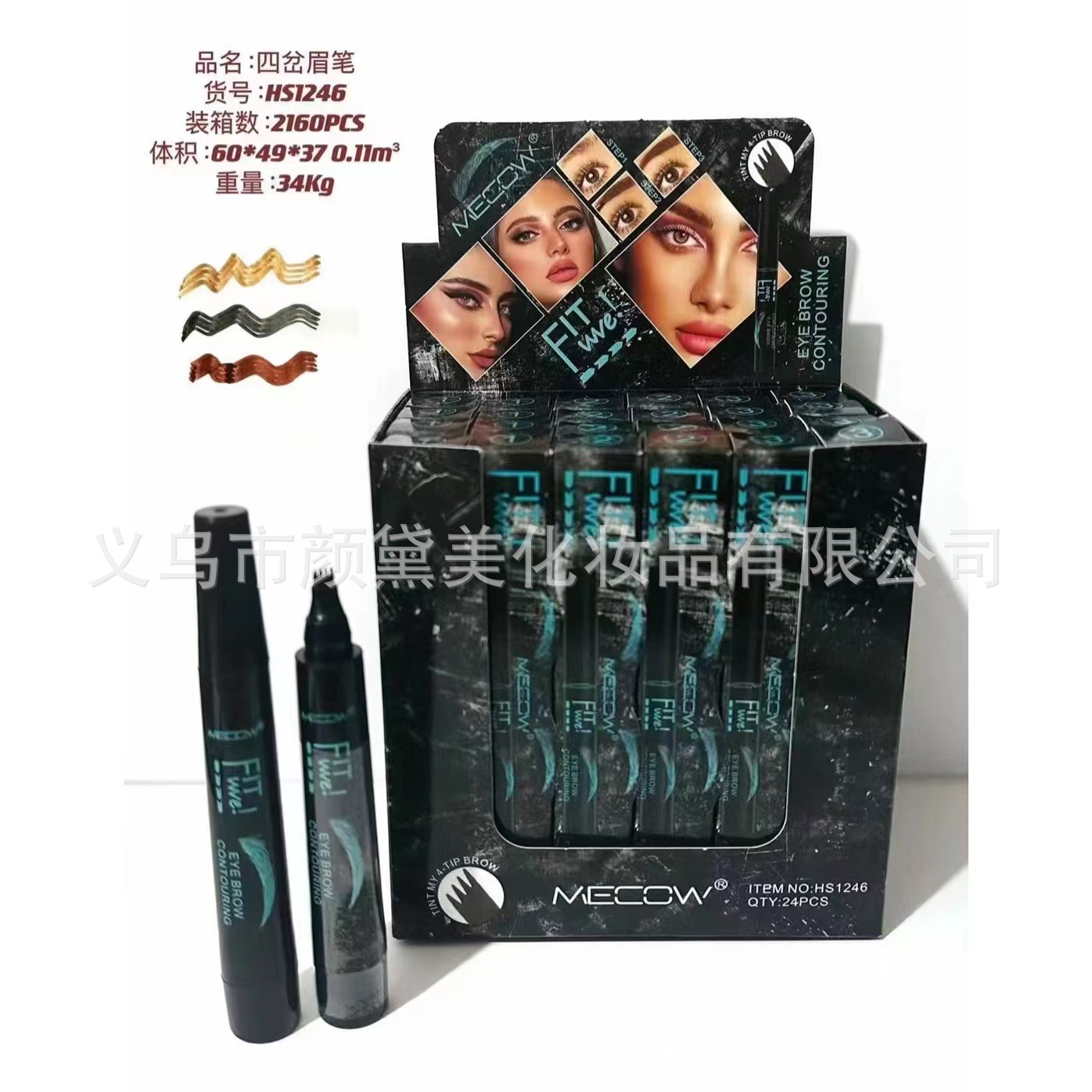 跨境爆品MECOW四叉眉笔野生仿真防水防汗不掉色不晕染四分叉液体