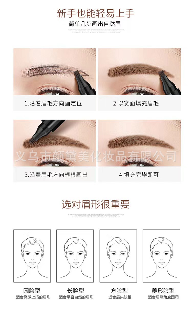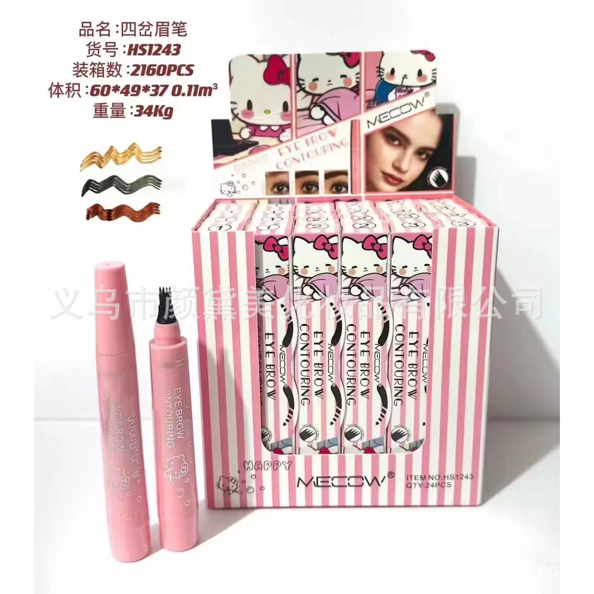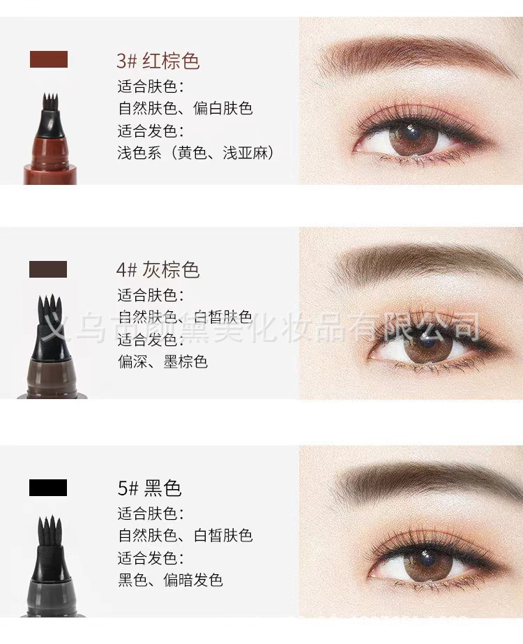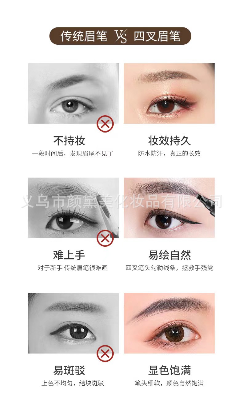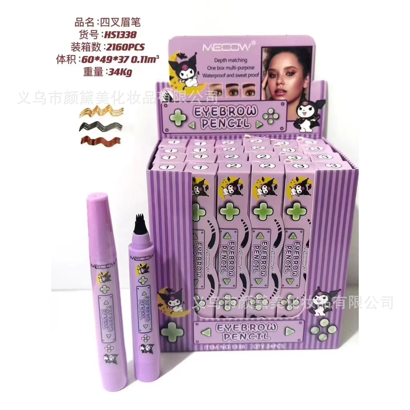跨境爆品MECOW四叉眉笔野生仿真防水防汗不掉色不晕染四分叉液体