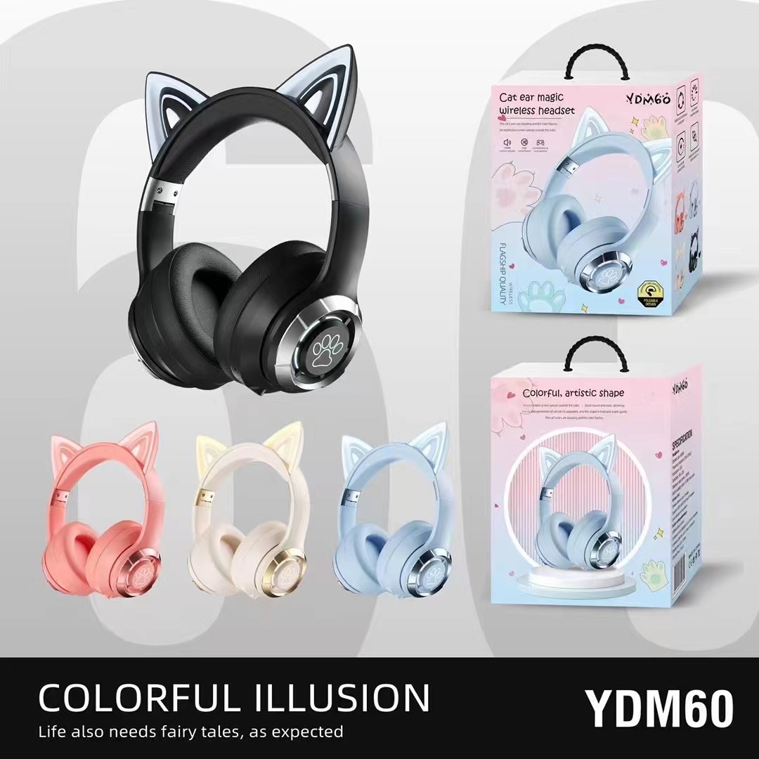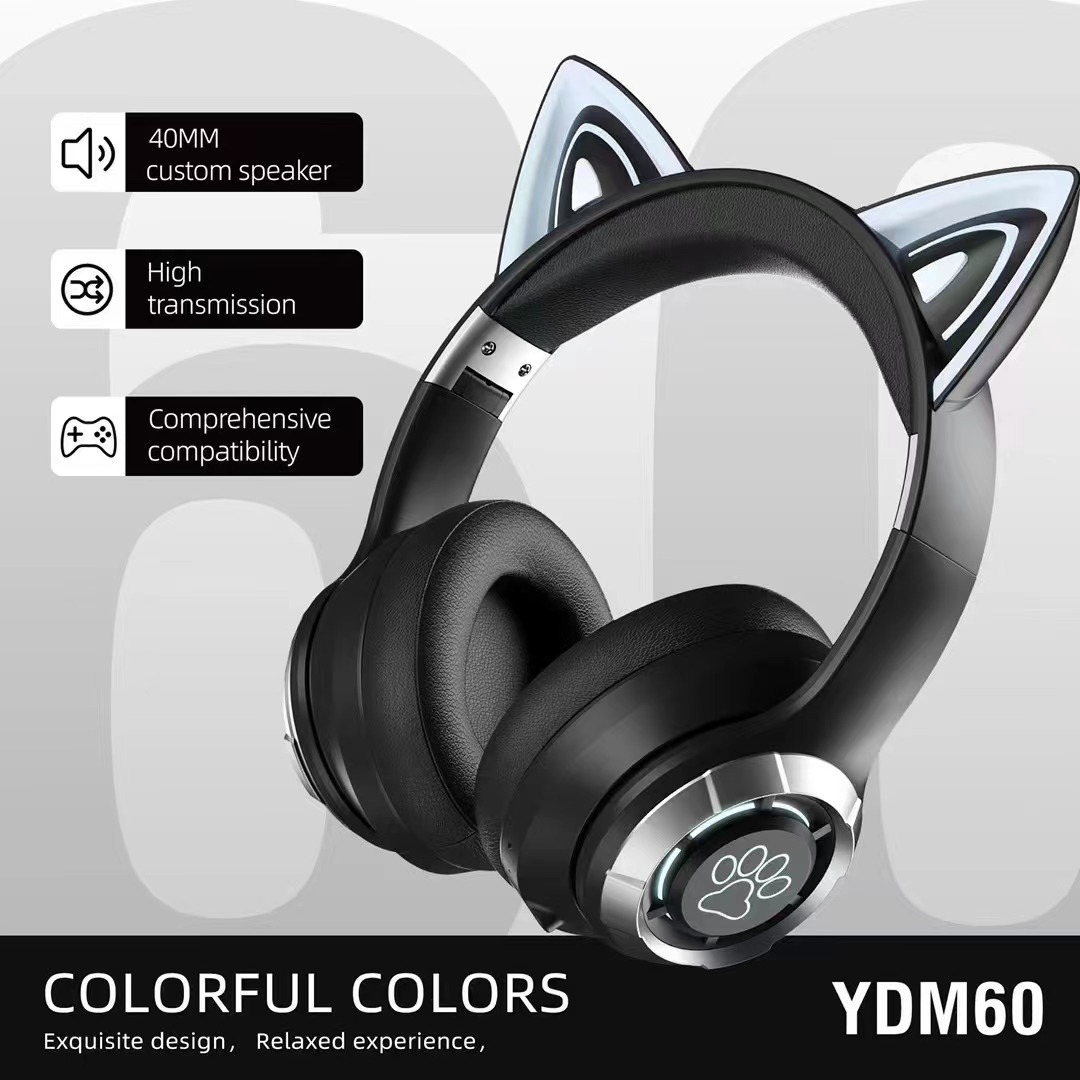 跨境头戴式无线蓝牙耳机YDM60 猫耳猫爪重低音折叠便携厂家直销