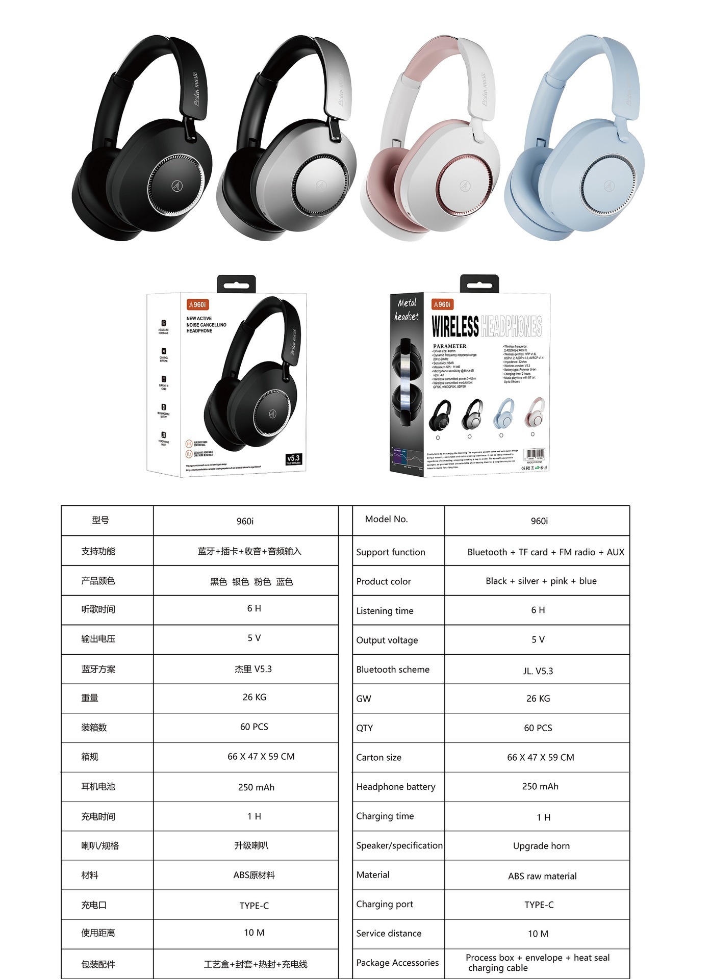 960i新款头戴式无线蓝牙电竞游戏耳机折叠可伸缩收音耳机5.0