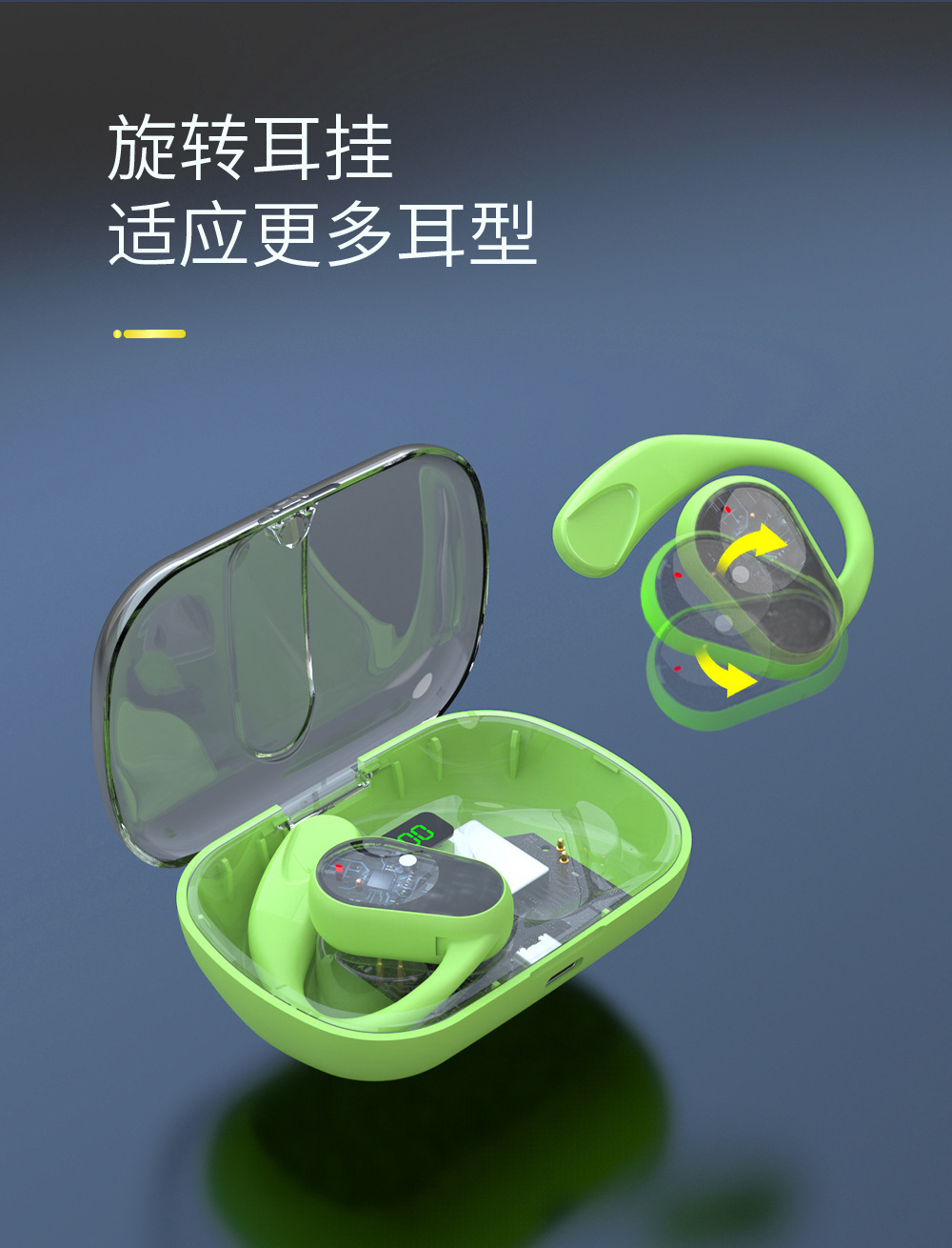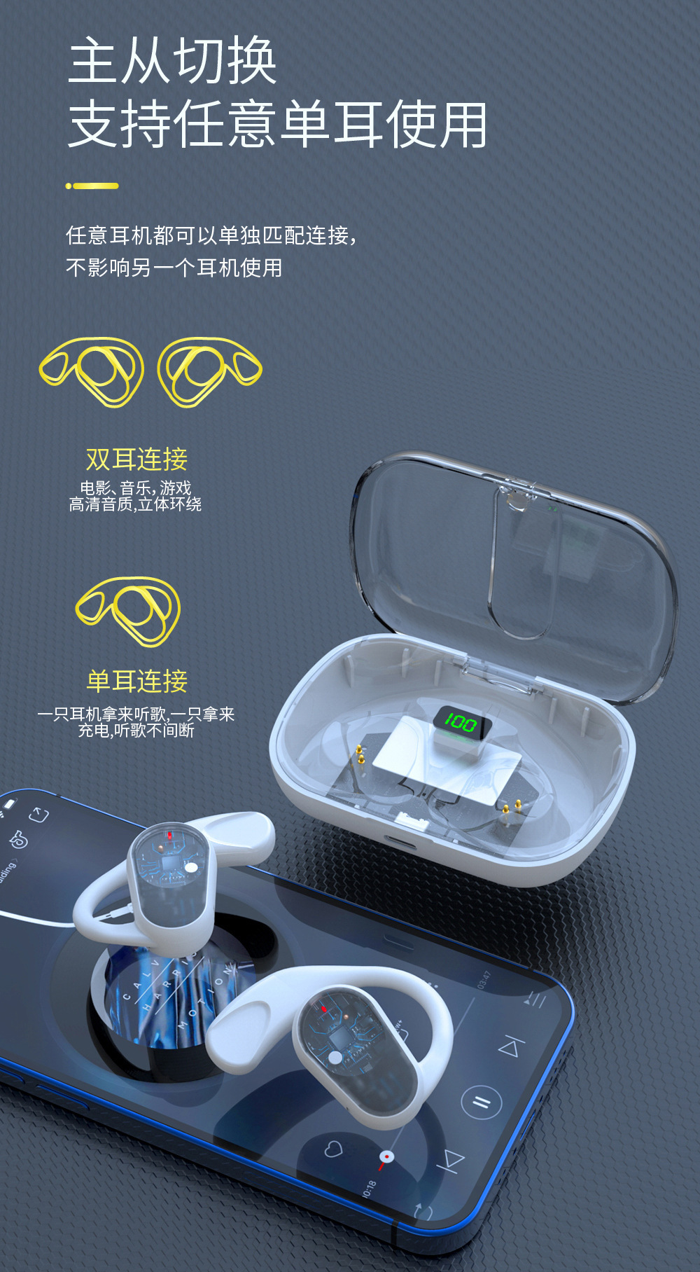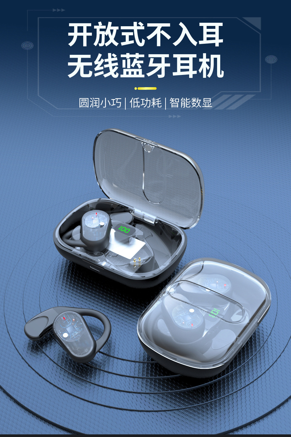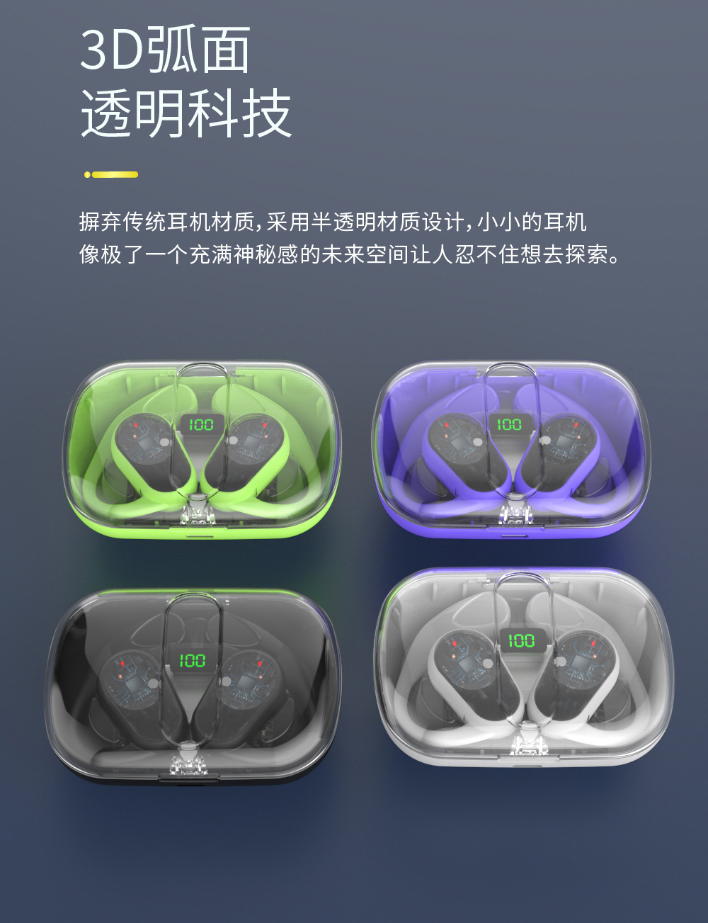 跨境新品私模OWS80方式旋转挂耳透明数显蓝牙耳机运动游戏耳机