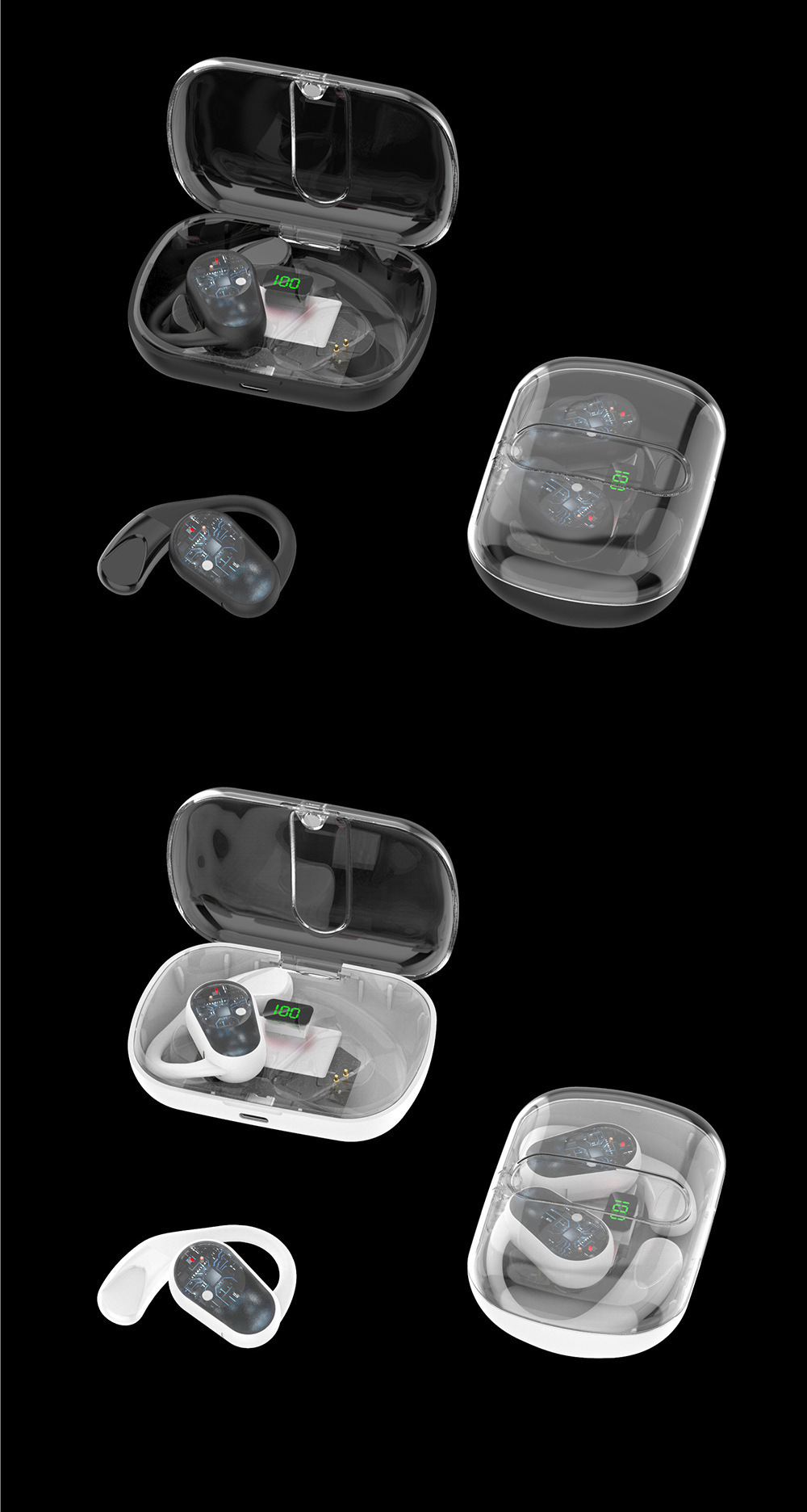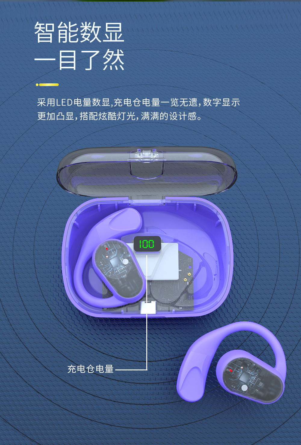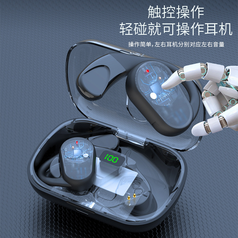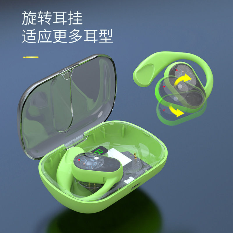 跨境新品私模OWS80方式旋转挂耳透明数显蓝牙耳机运动游戏耳机