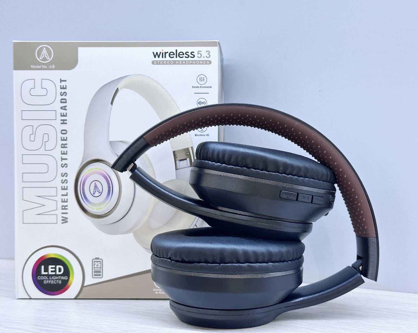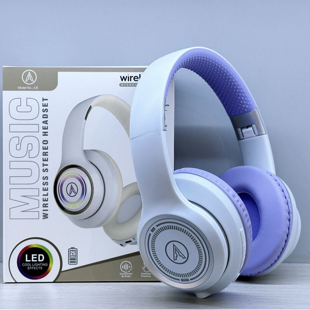 A6头戴式无线蓝牙电竞游戏耳机带灯折叠可伸缩收音耳机蓝牙5.3