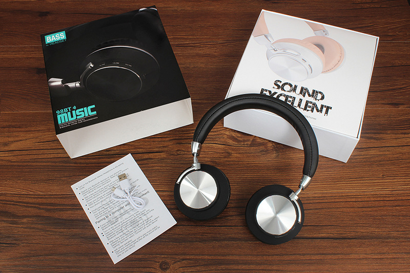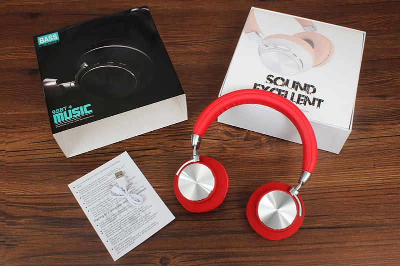 98BT头戴式无线蓝牙耳机重低音折叠金属饰片支架插卡耳机