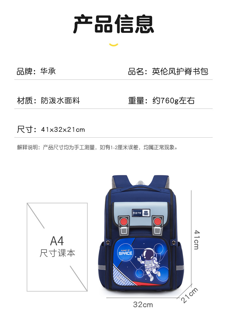 新款小学生护脊减负太空书包儿童宇航员双肩包大容量尼龙背包印字