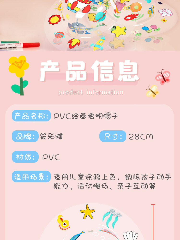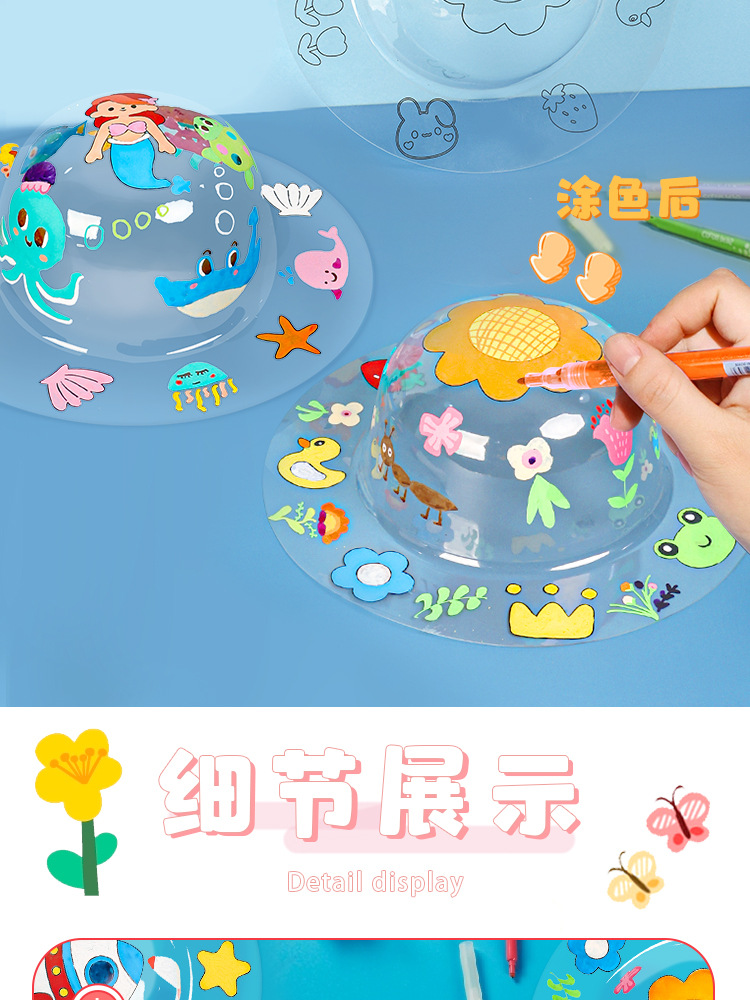 幼儿园PVC透明绘画帽子印logo小学生创意装饰帽子儿童涂鸦装饰