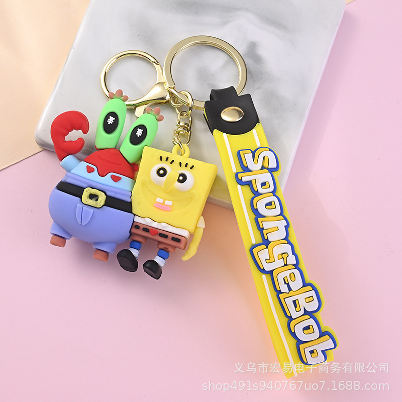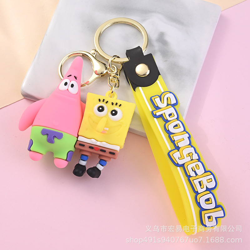 卡通派大星海绵宝宝钥匙扣解压钥匙链情侣包包挂件可爱公仔小礼品