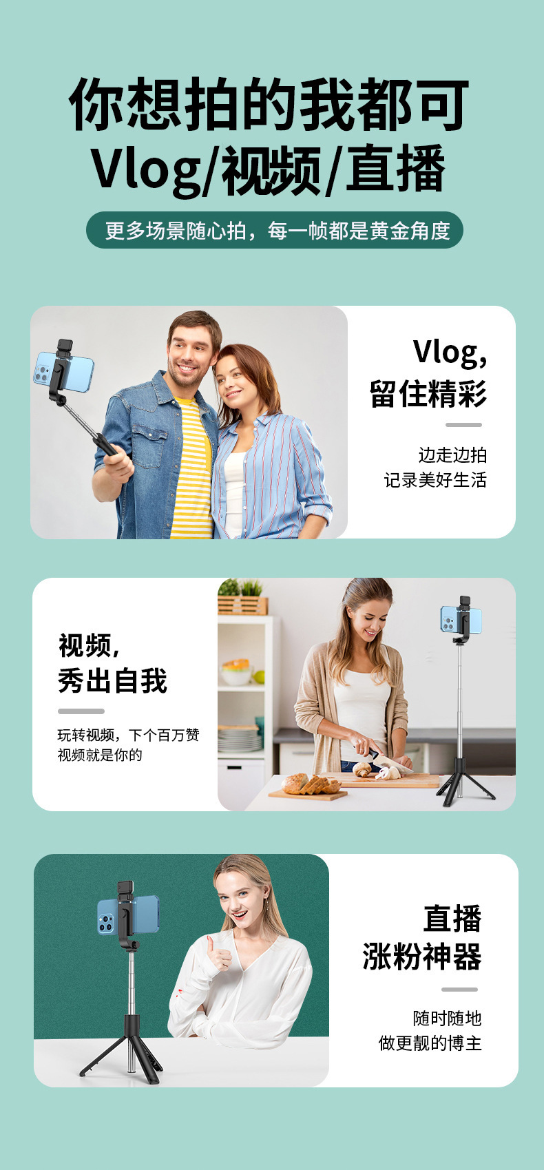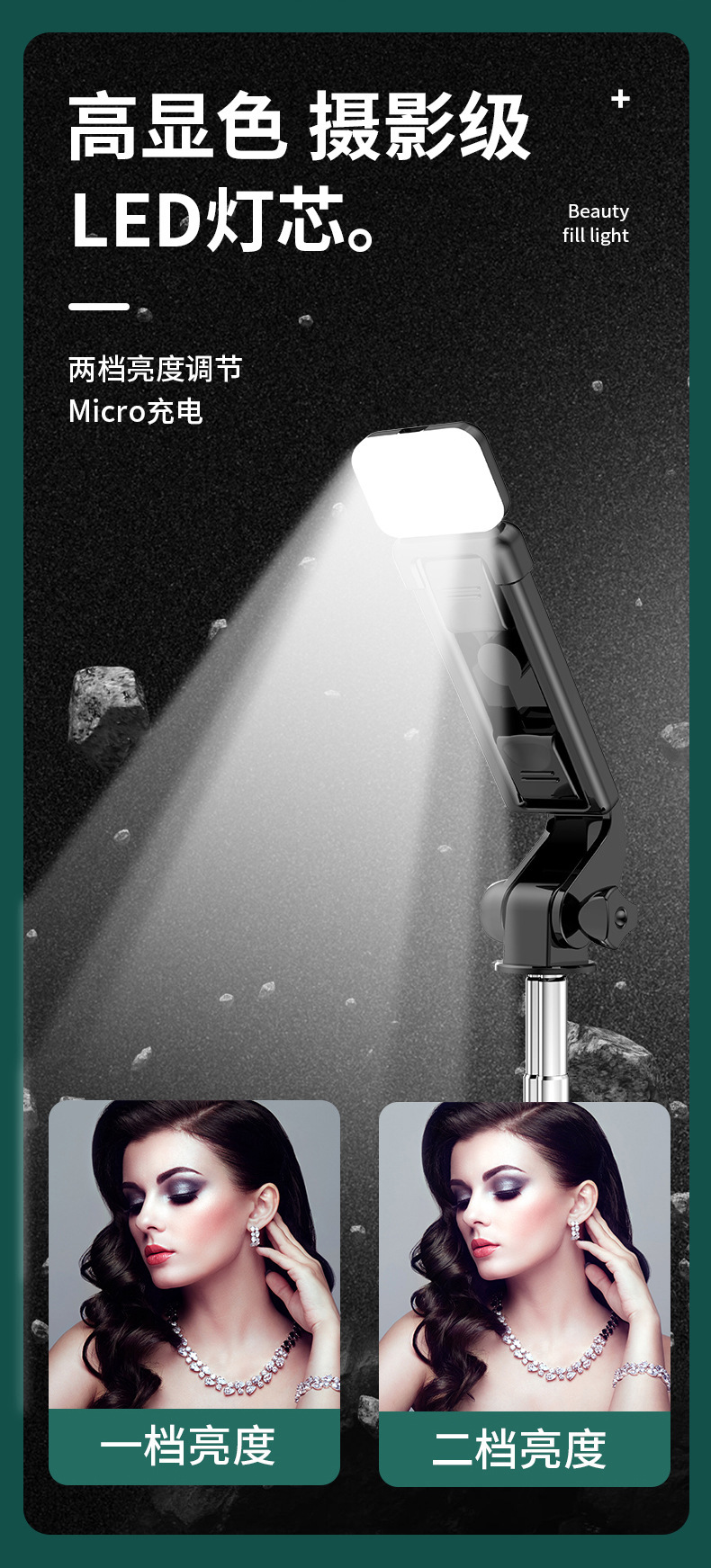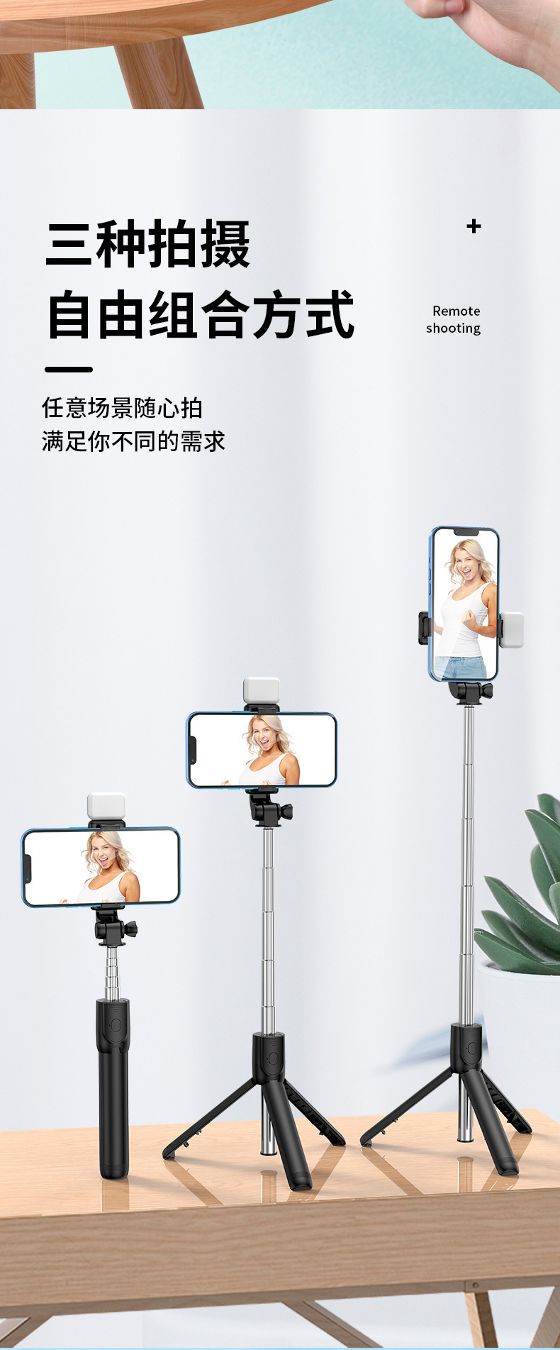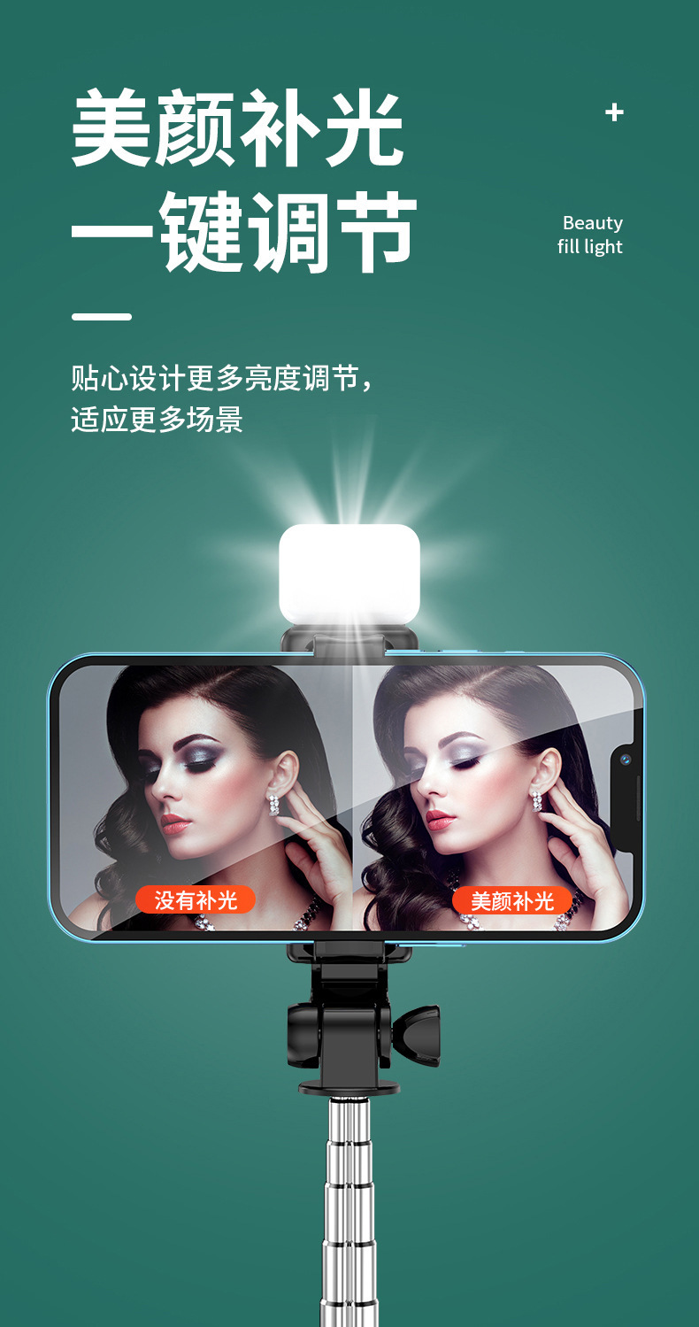 新款蓝牙自拍杆补光灯直播支架爆款迷你多功能手机自拍杆工厂批发