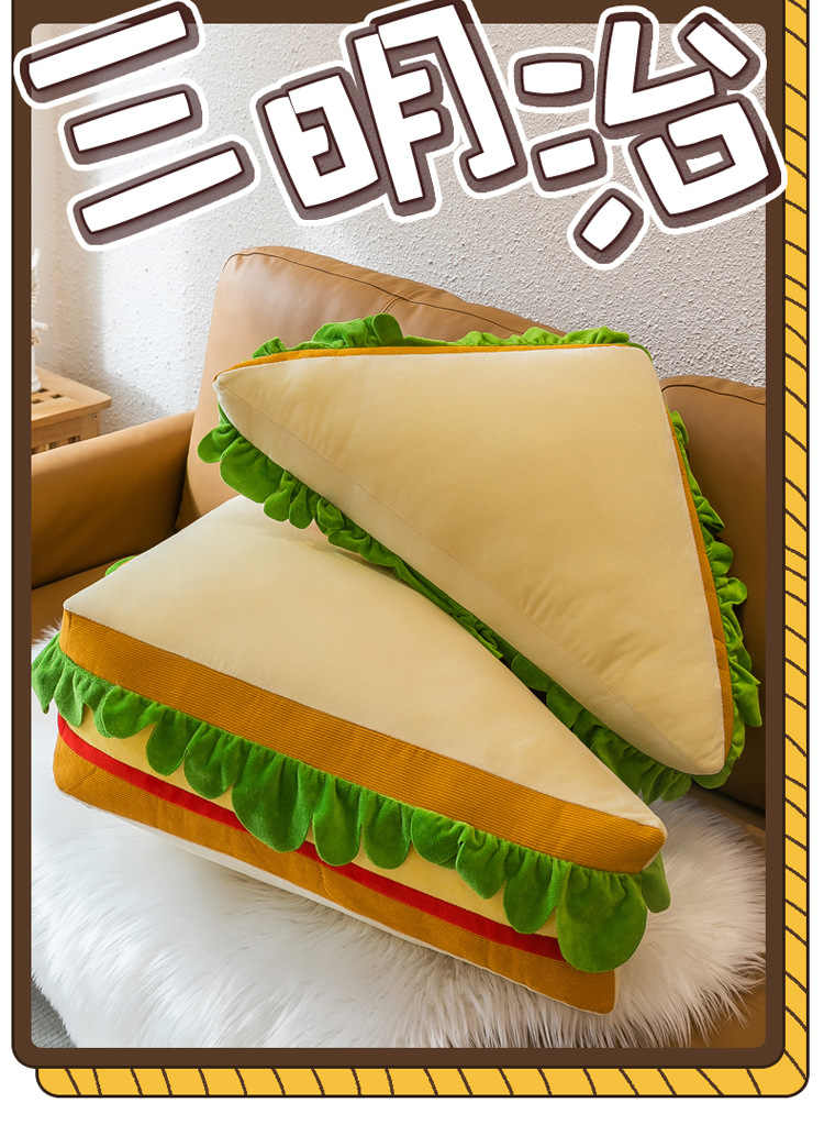 跨境仿真三明治毛绒玩具靠垫睡觉抱枕布娃娃可爱超软女孩床上玩偶