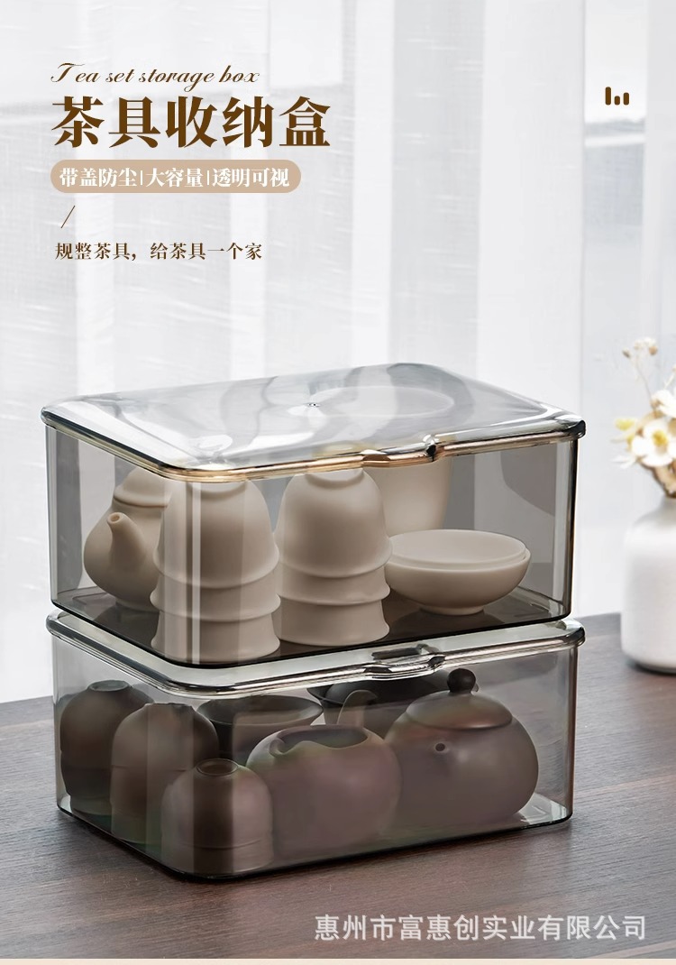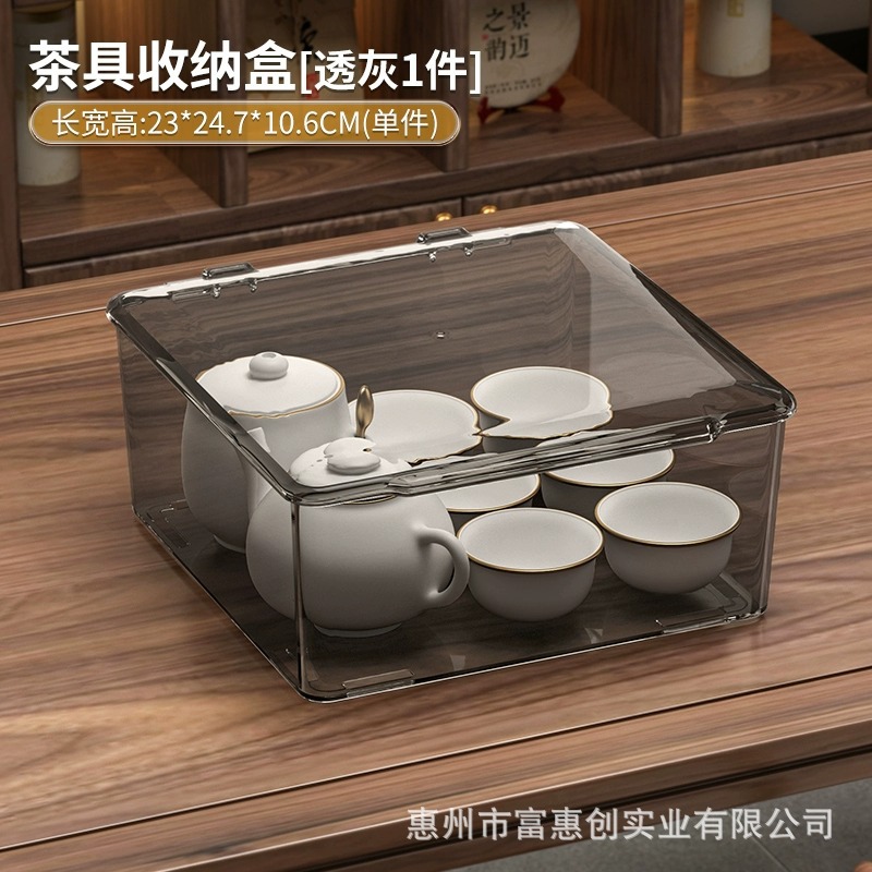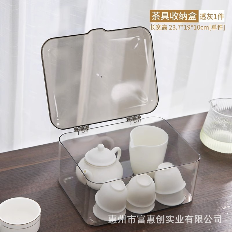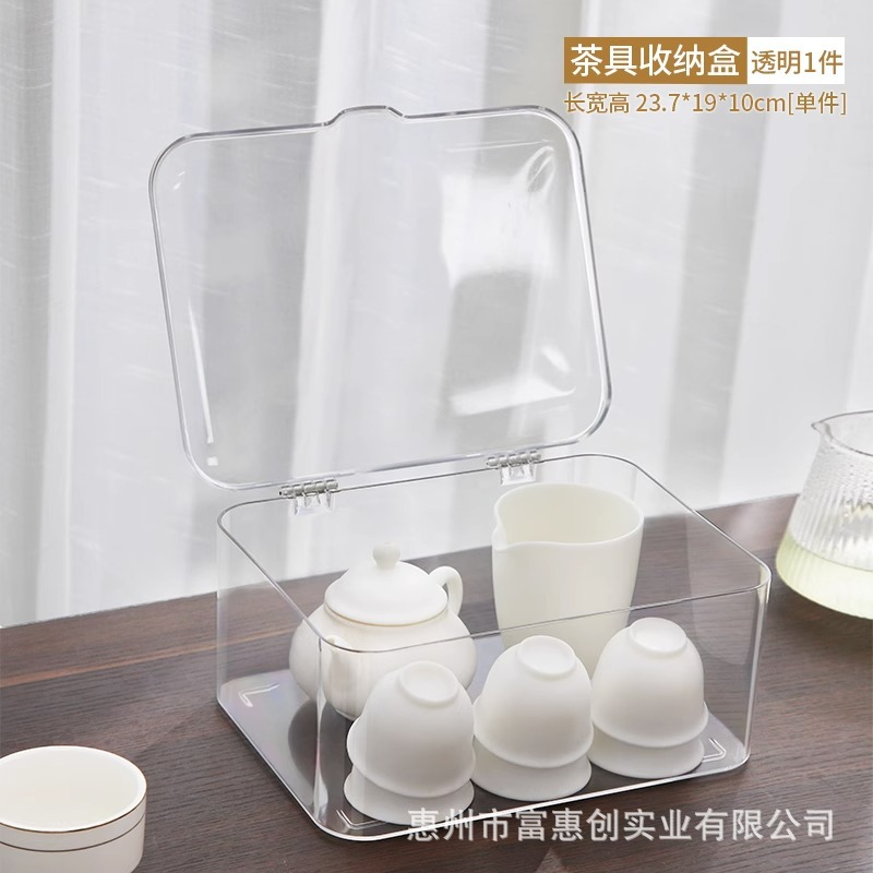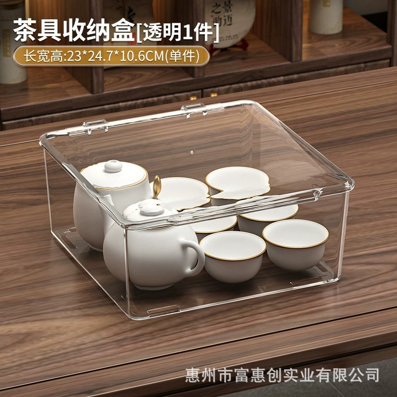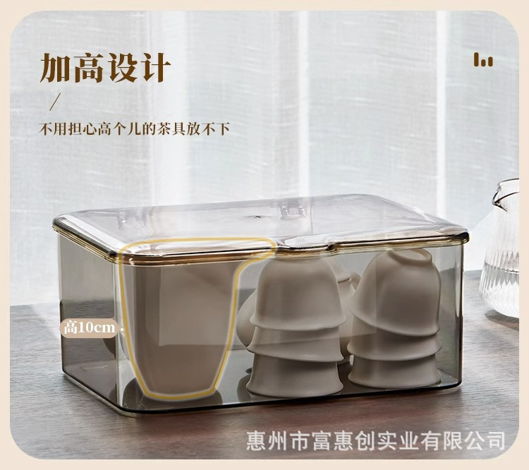 茶具收纳盒带盖防尘透明茶几桌面茶叶茶杯整理存放功夫茶壶置物架