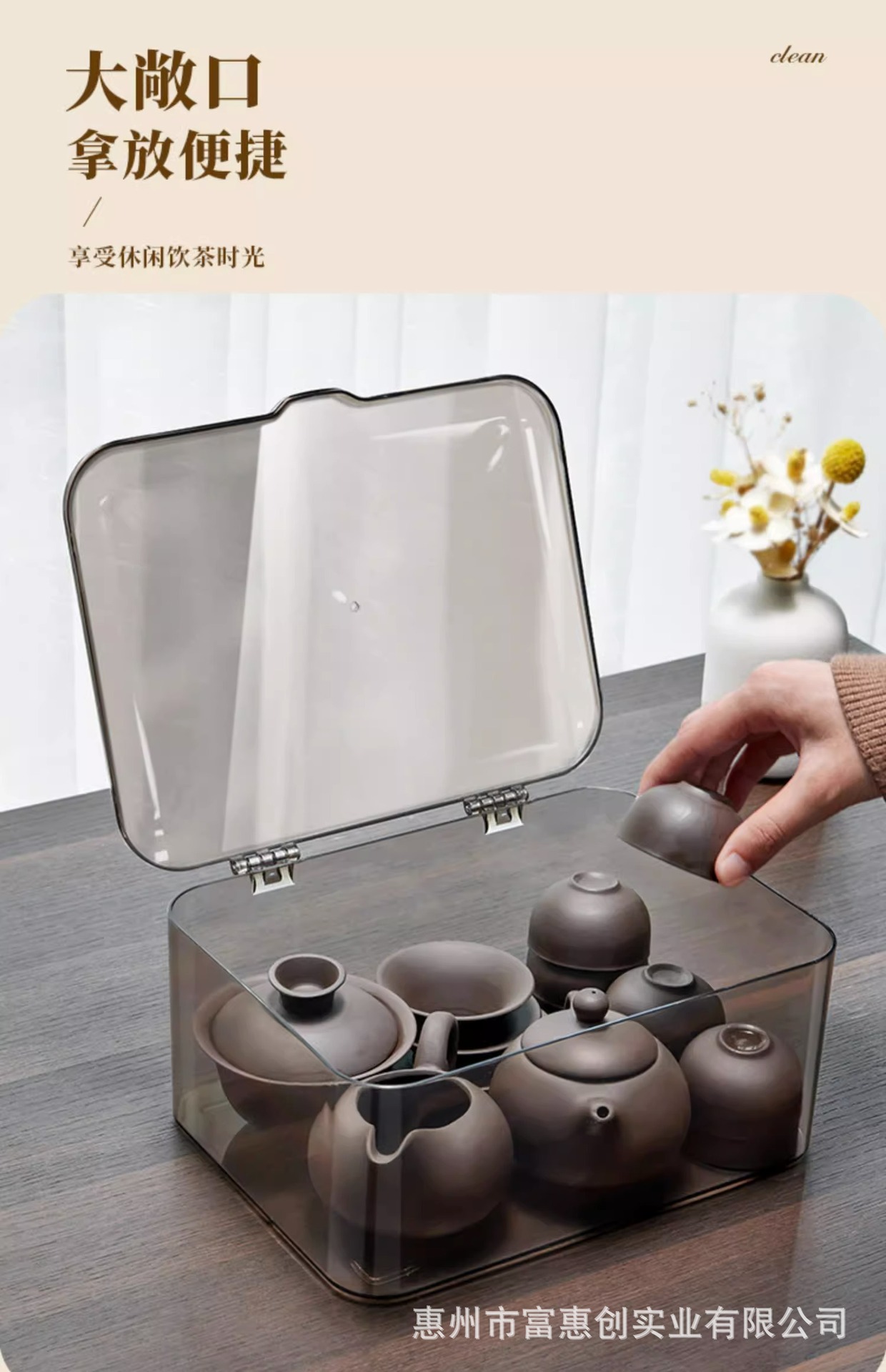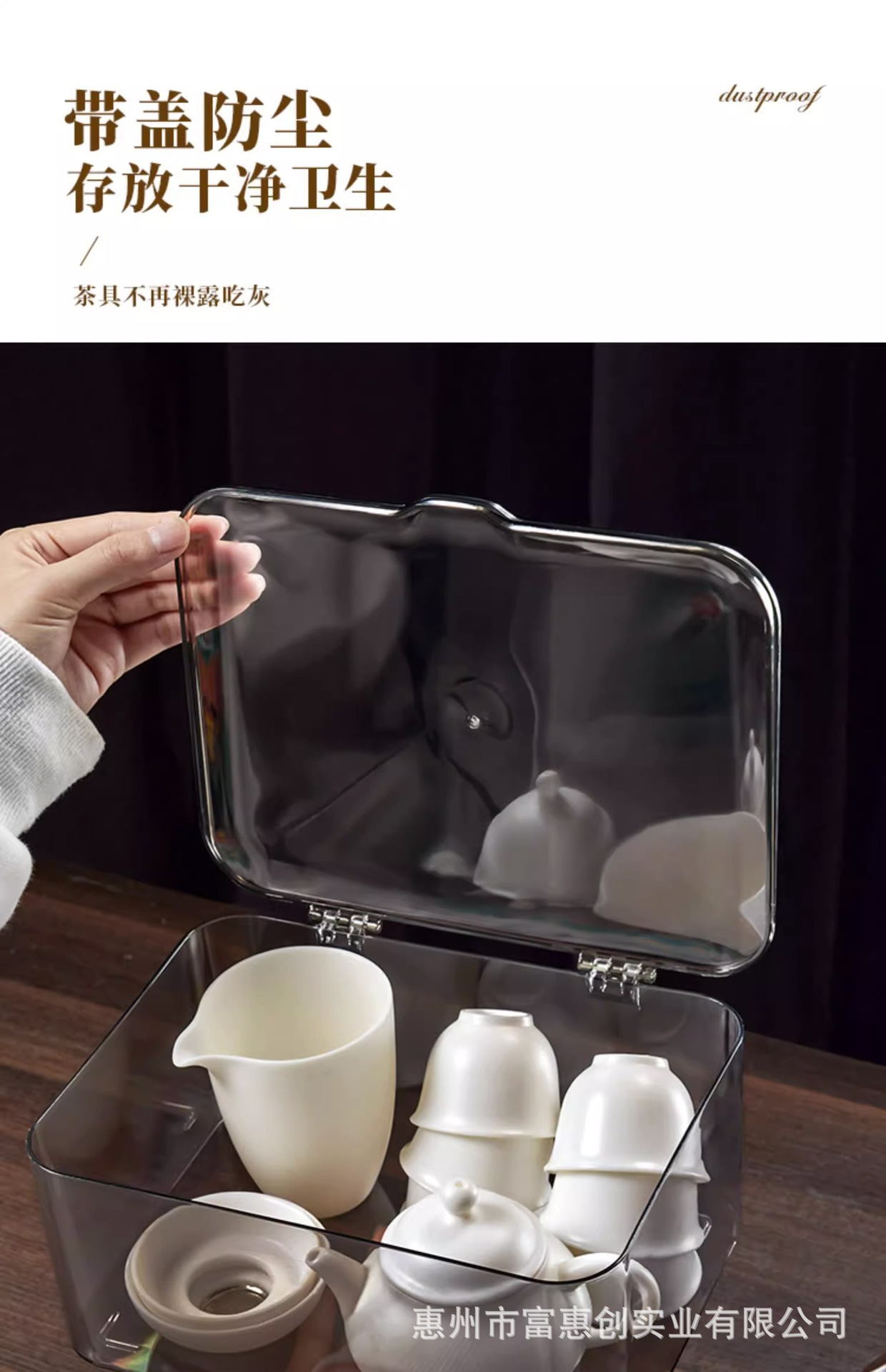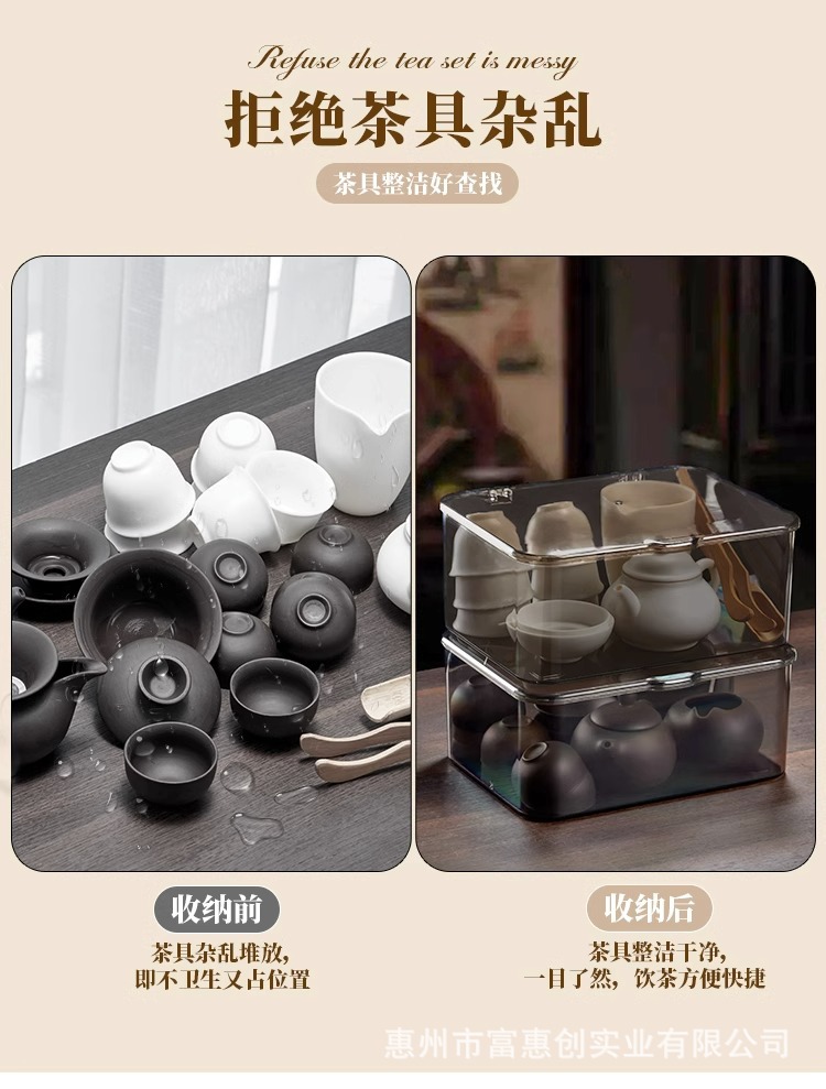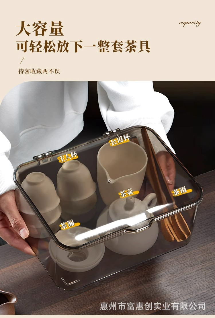 茶具收纳盒带盖防尘透明茶几桌面茶叶茶杯整理存放功夫茶壶置物架