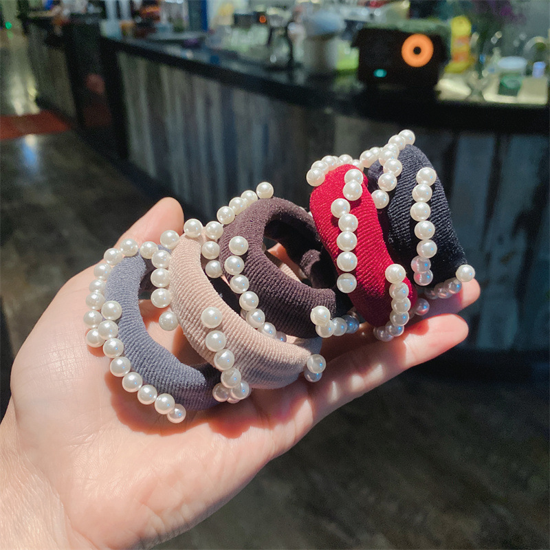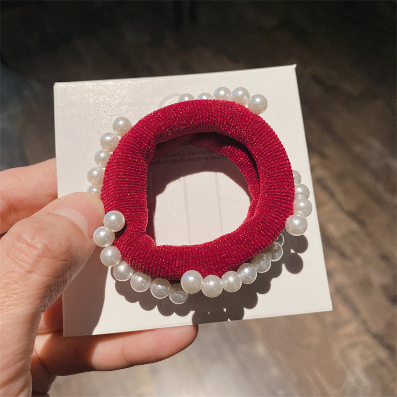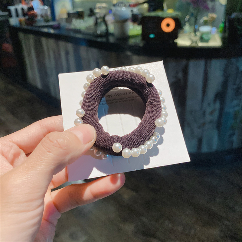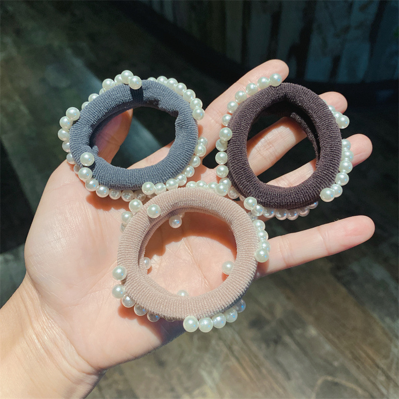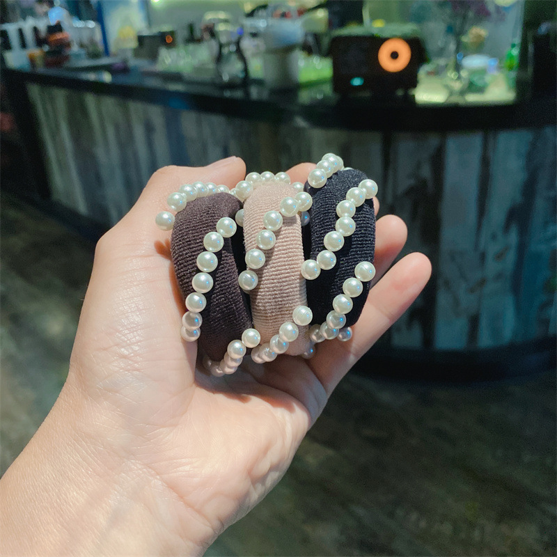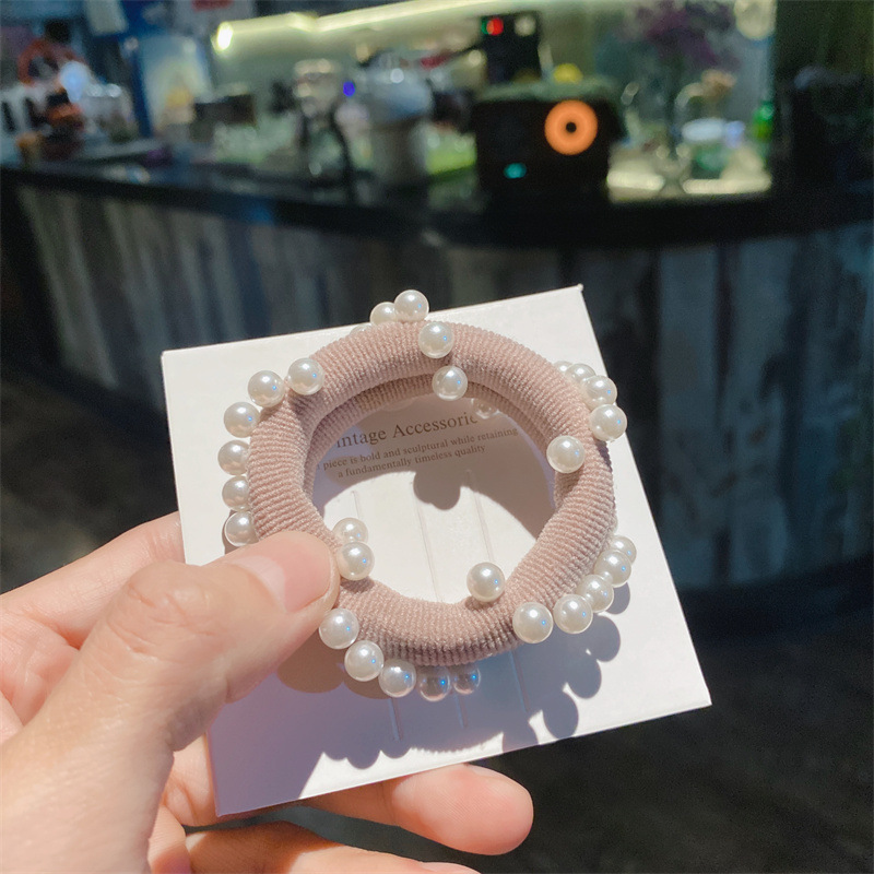韩式高弹力珍珠发圈高质感钉珠发绳毛巾圈马尾扎头皮筋丸子头发饰
