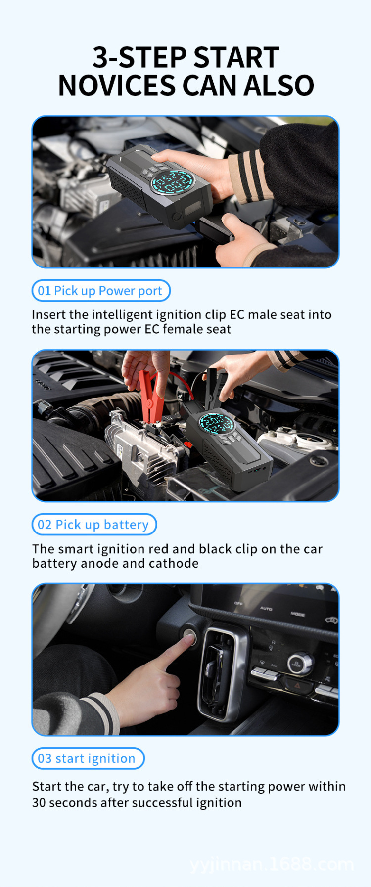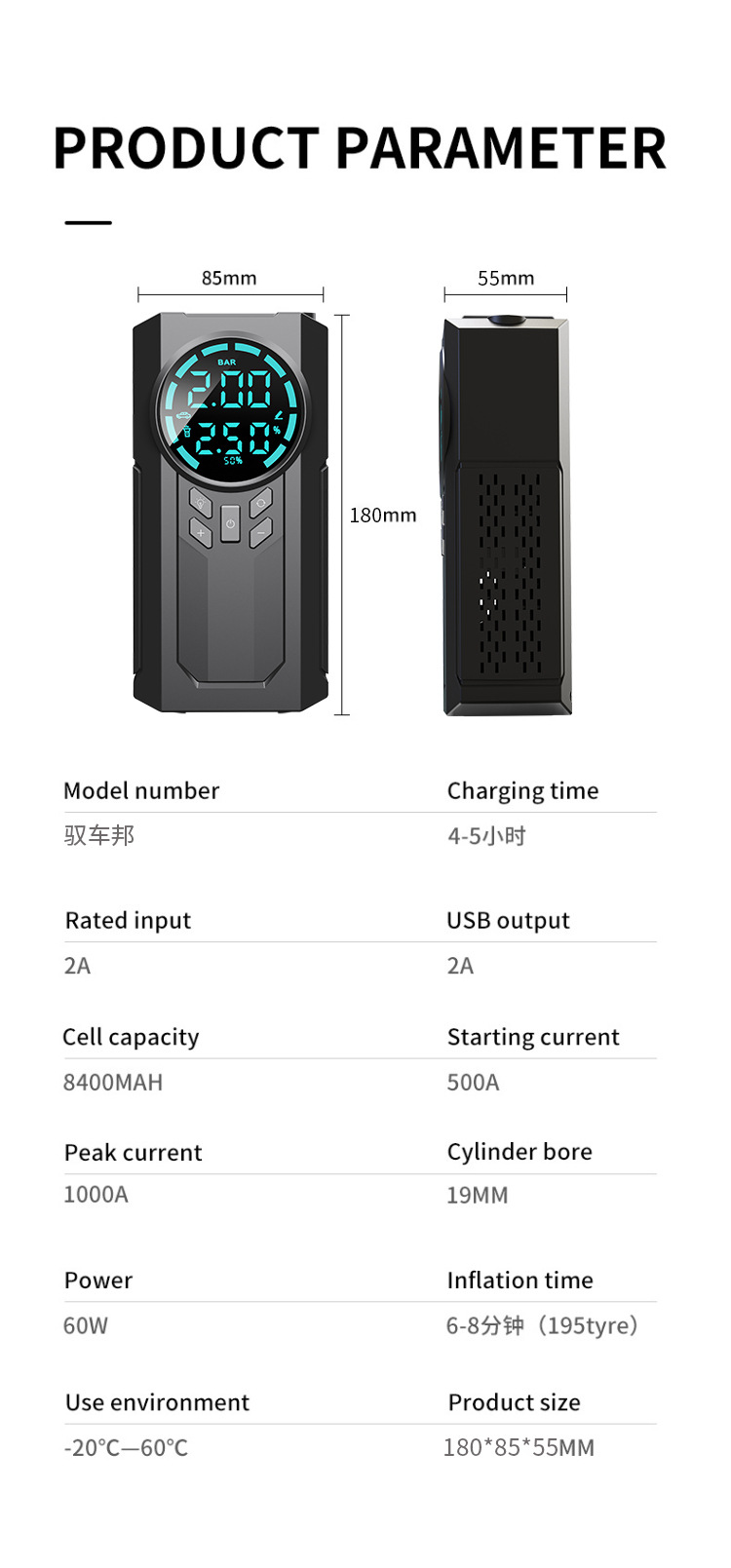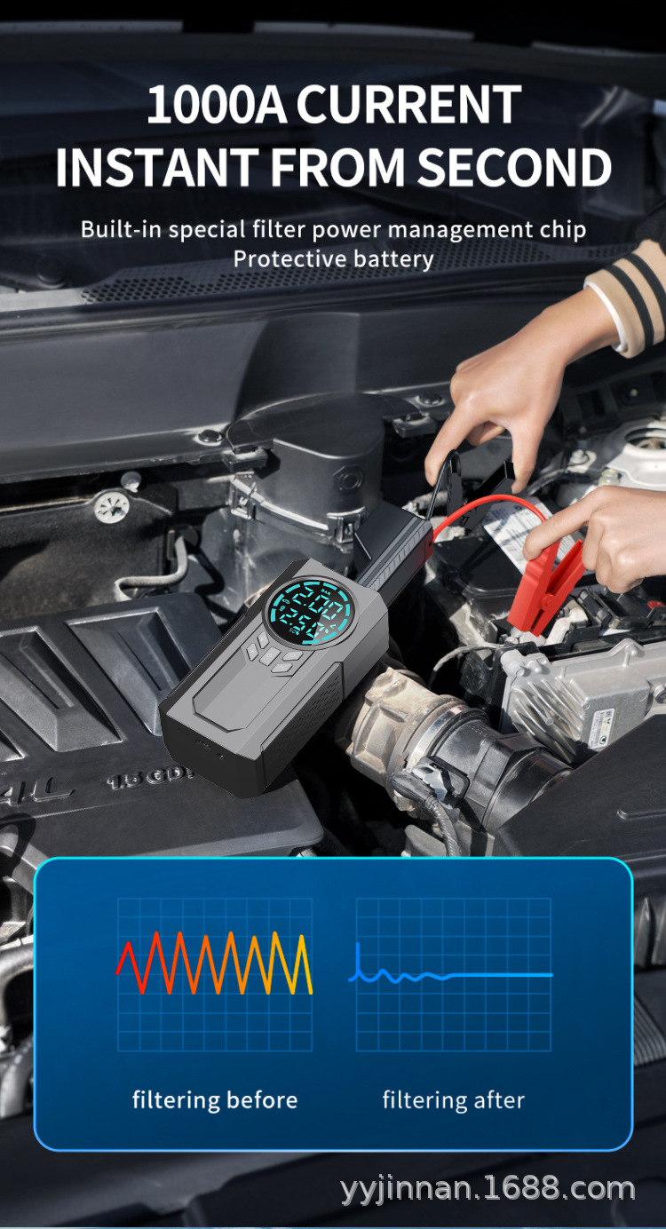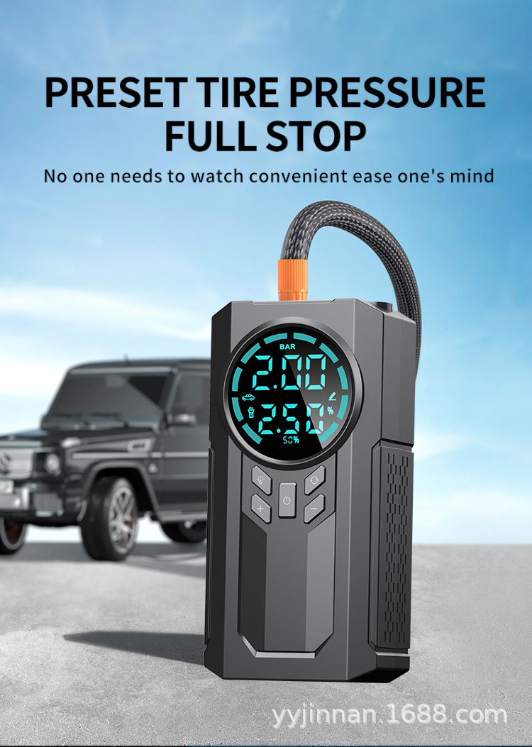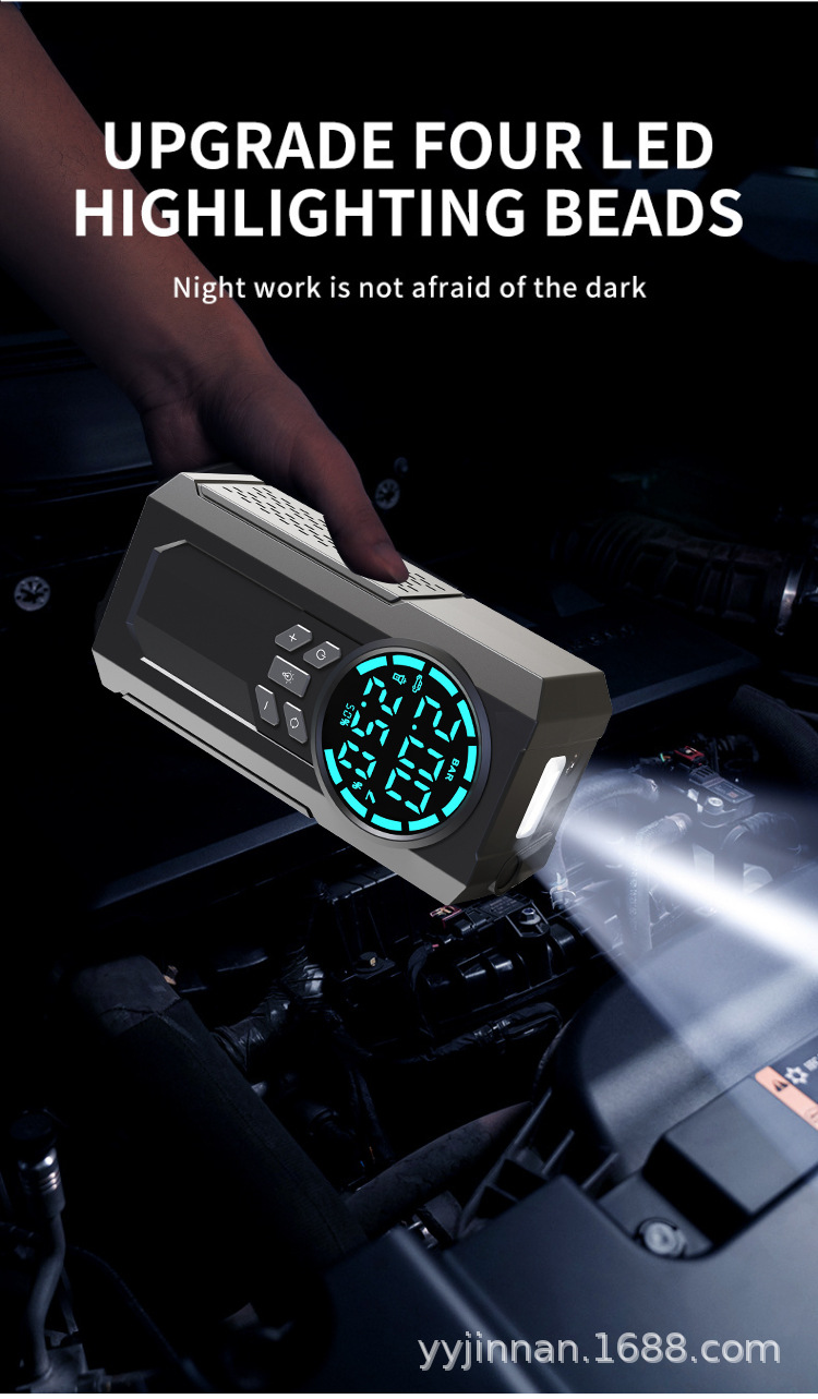 跨境便携式汽车应急启动电源车载充气泵 可当充电宝数显打气泵