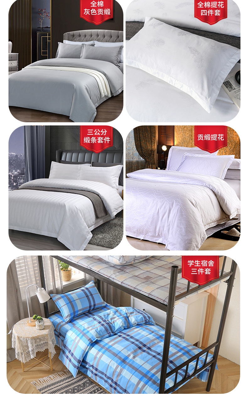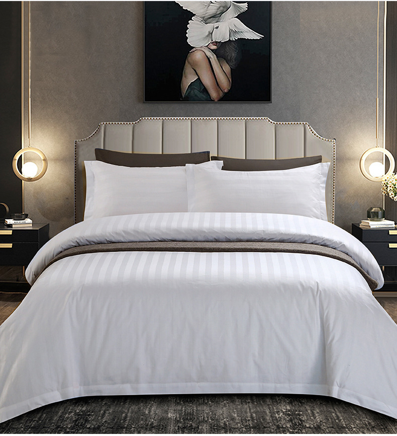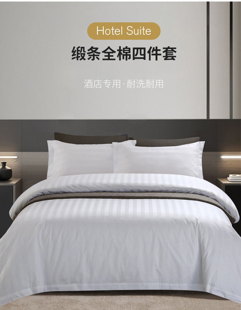 五星级酒店缎条四件套民宿宾馆床品酒店四件套民宿酒店床上四件套