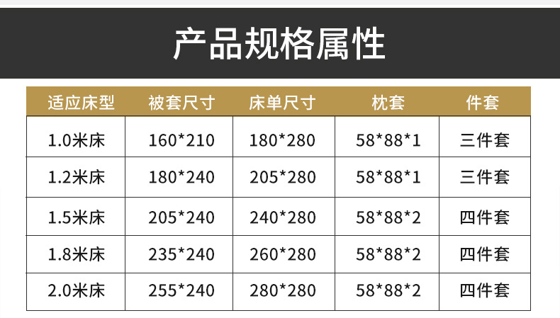 | 1.2 m bed three-piece set (quilt cover 180*240 bed sheet 205*280 pillowcase 58*88*1 piece)(1.2米床三件套(被套180*240床单205*280枕套58*88*1只)) | USD $40.75 | 5000 set available |