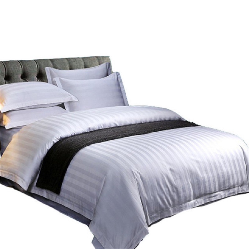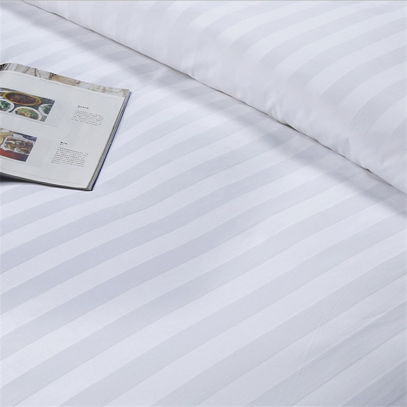 酒店三公分缎条床上用品宾馆白色四件套全棉酒店布草四件套
