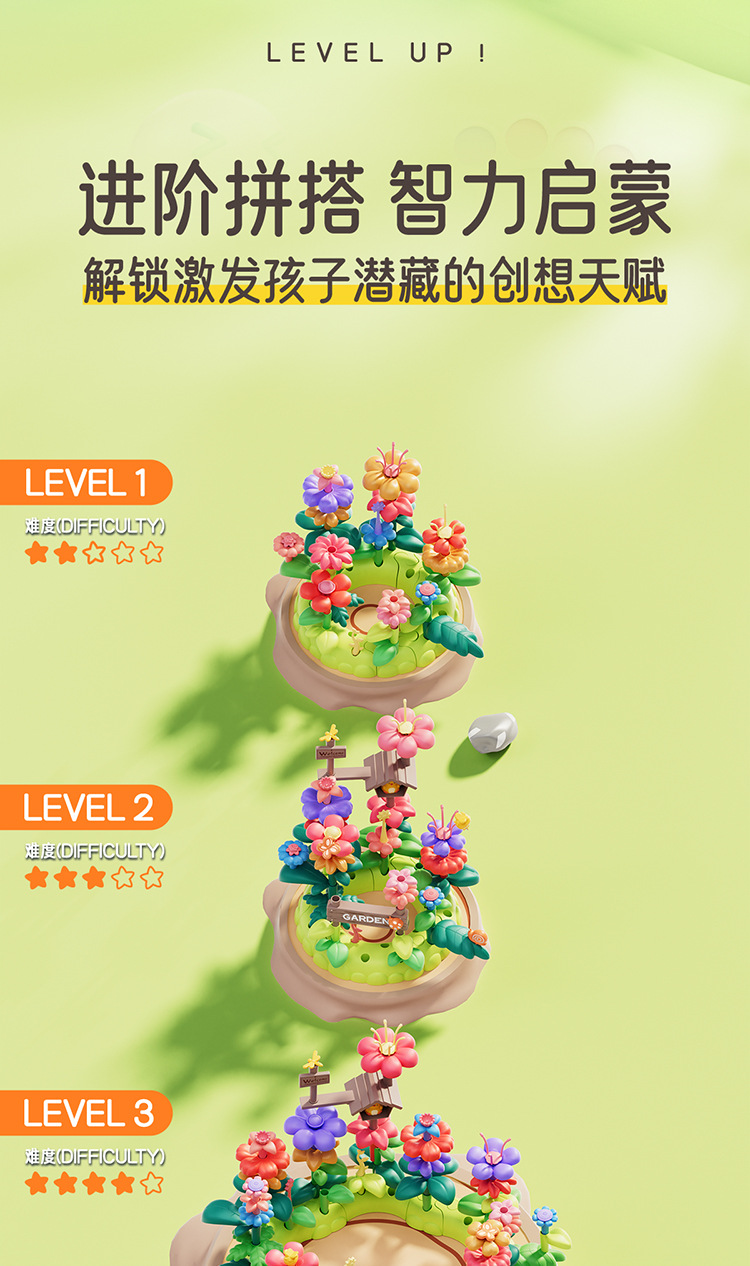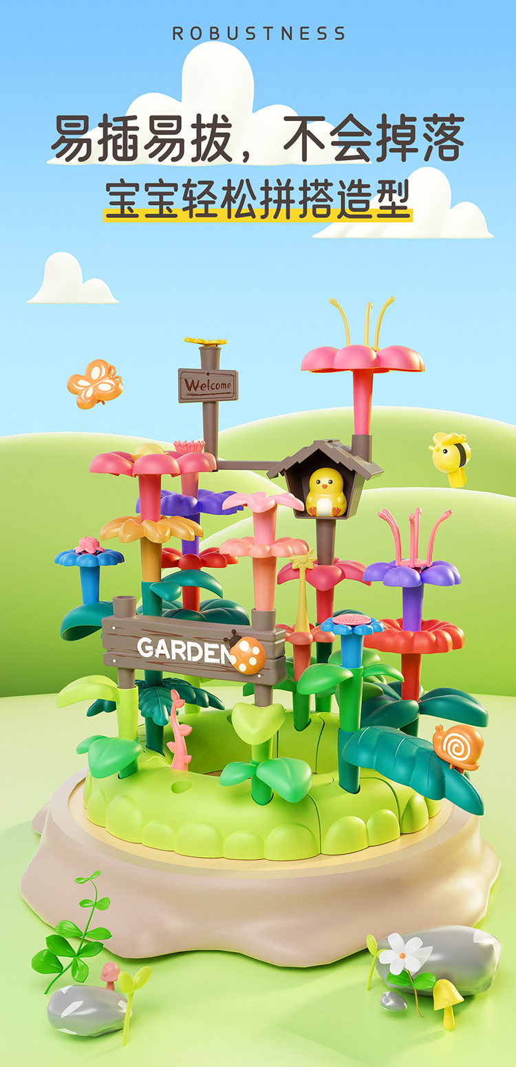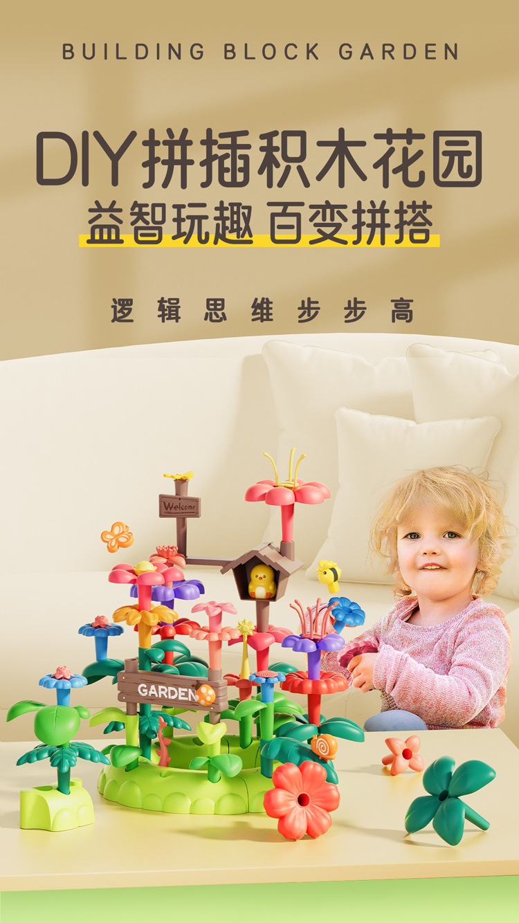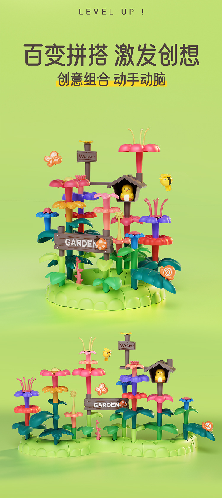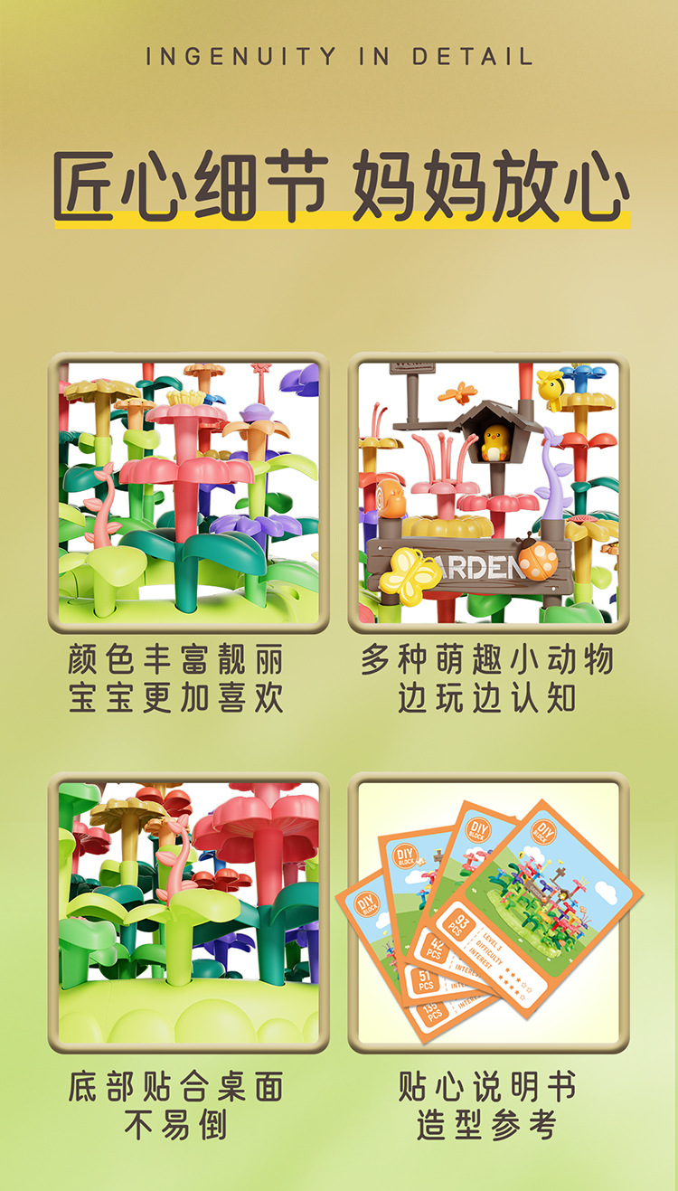 跨境儿童积木拼插玩具益智百变花园套装拼装大颗粒过家家生日礼物
