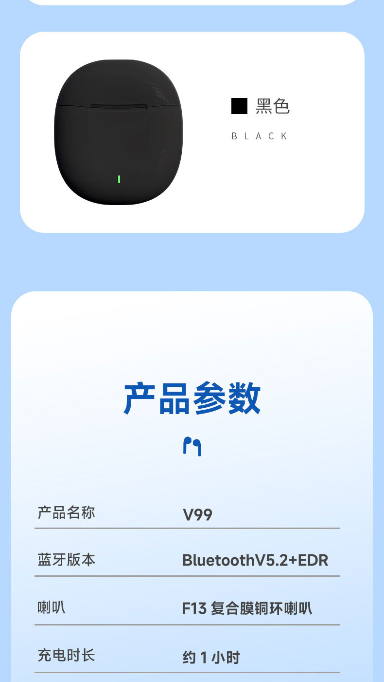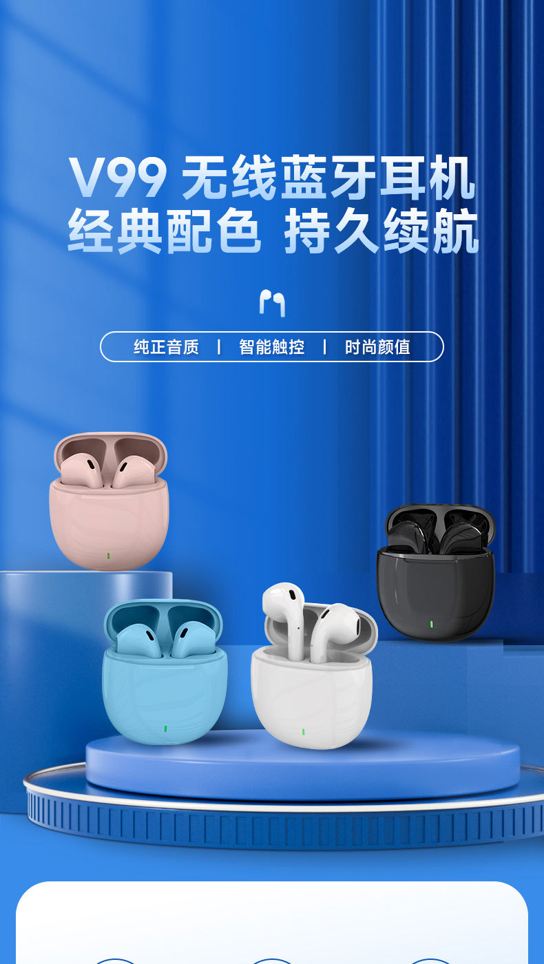 V99跨境爆款无线蓝牙耳机手机通用款游戏无延迟重低音入耳式蓝牙