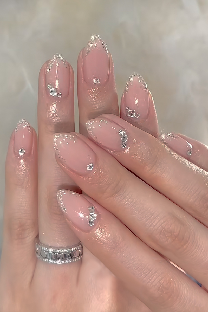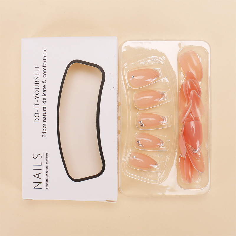 外贸热销穿戴甲法式闪粉边美甲贴片短水滴假指甲片成品24片可拆卸