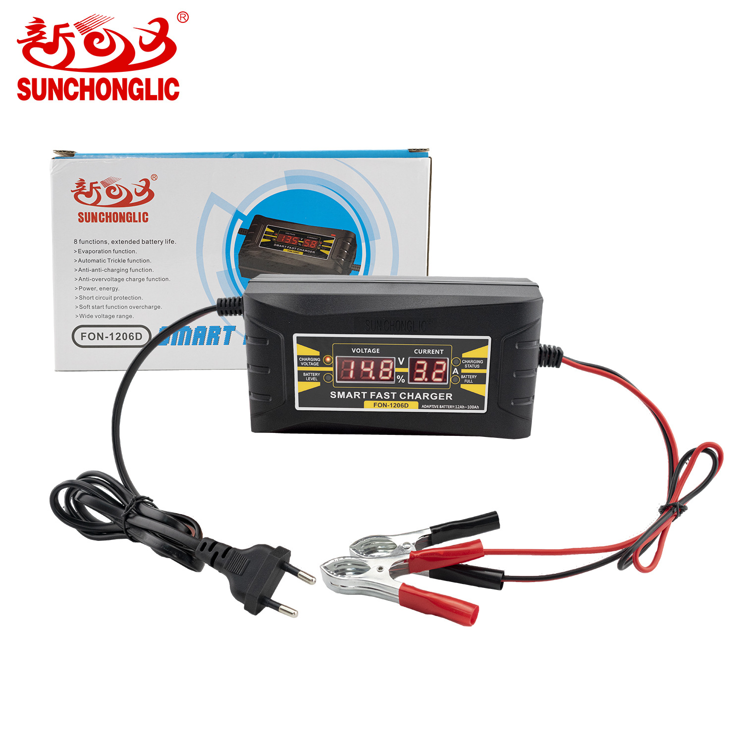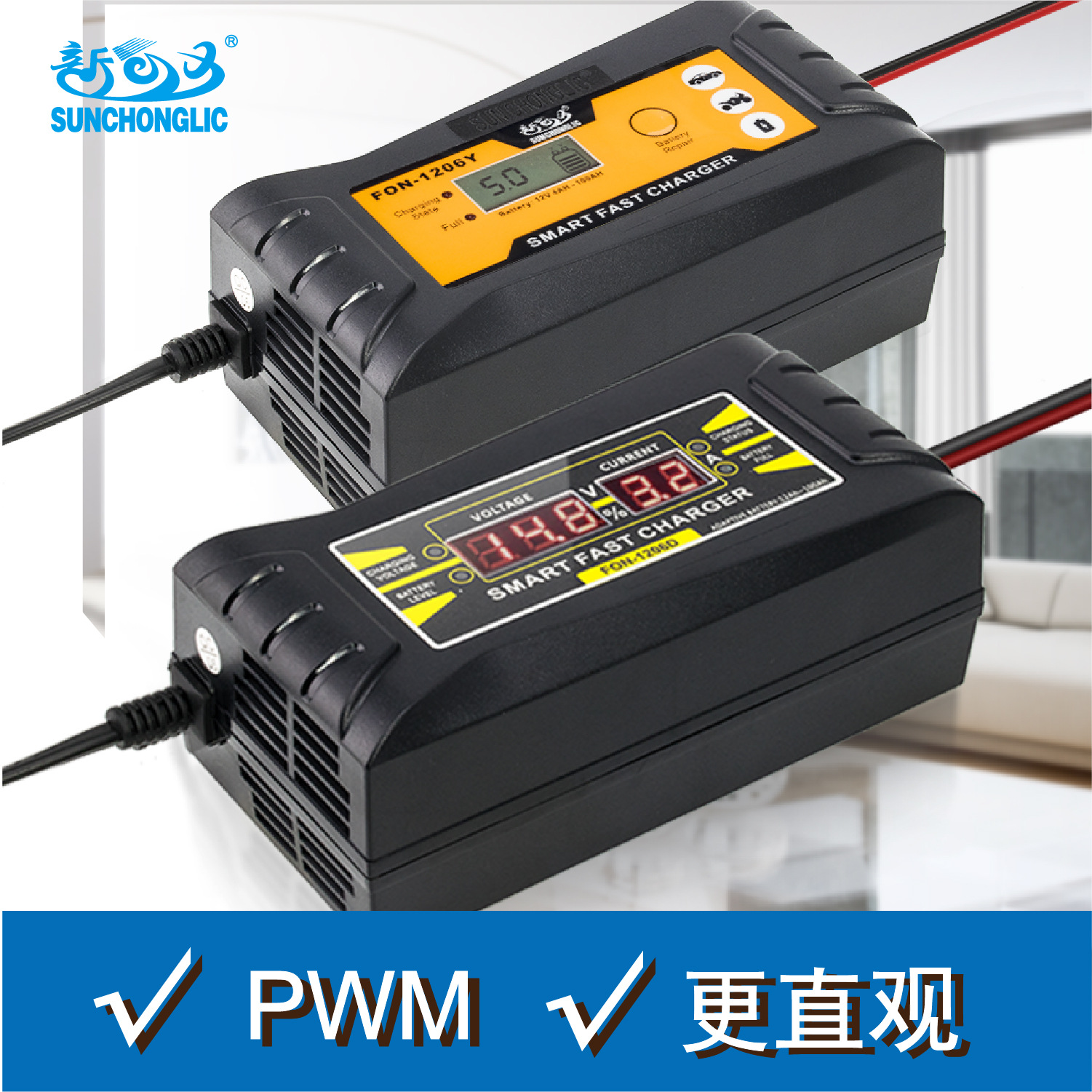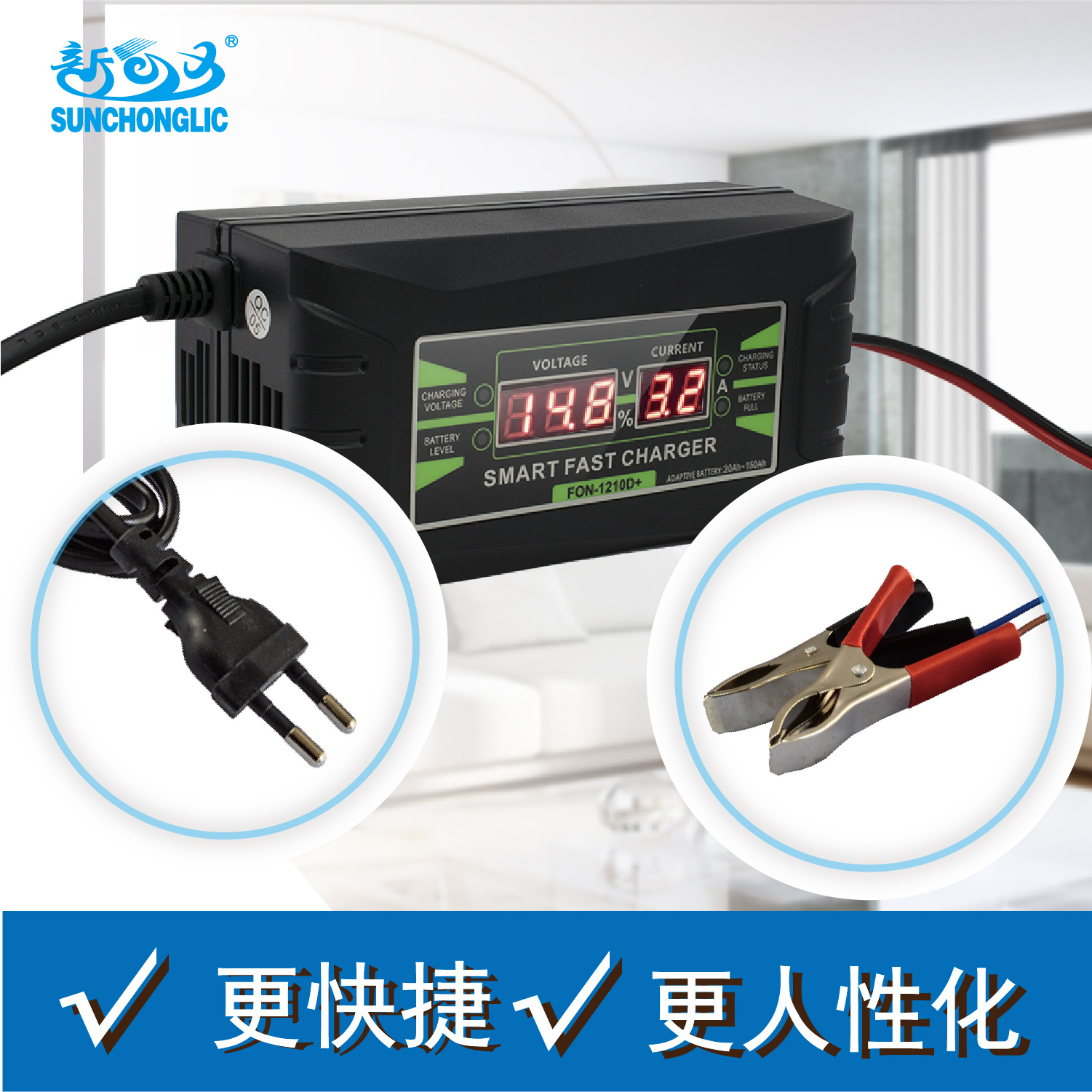 厂家直供汽车摩托电瓶12V6A10A智能快速铅酸电池胶体蓄电池充电器