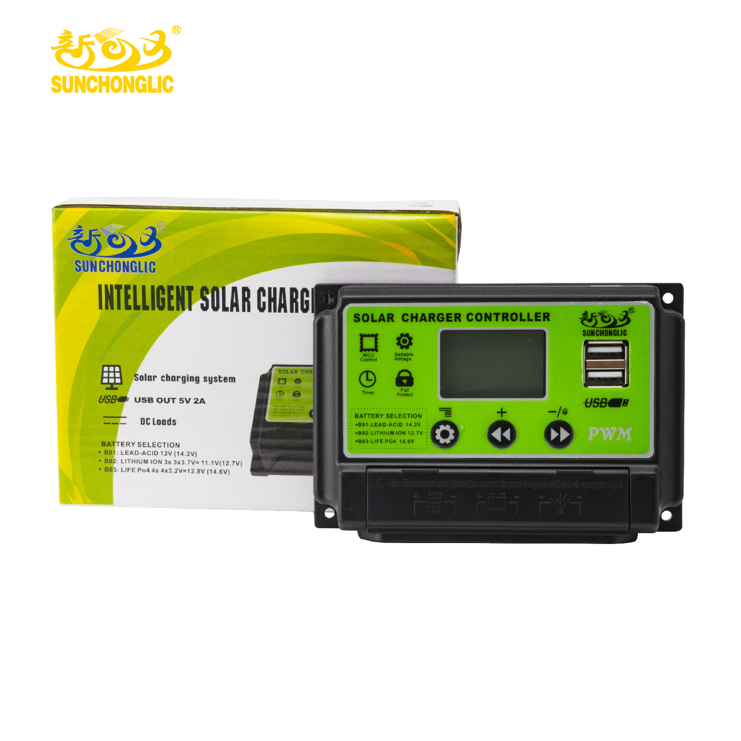 厂家外贸专供太阳能控制器12v/24v10A20A30APWM太阳能控制器