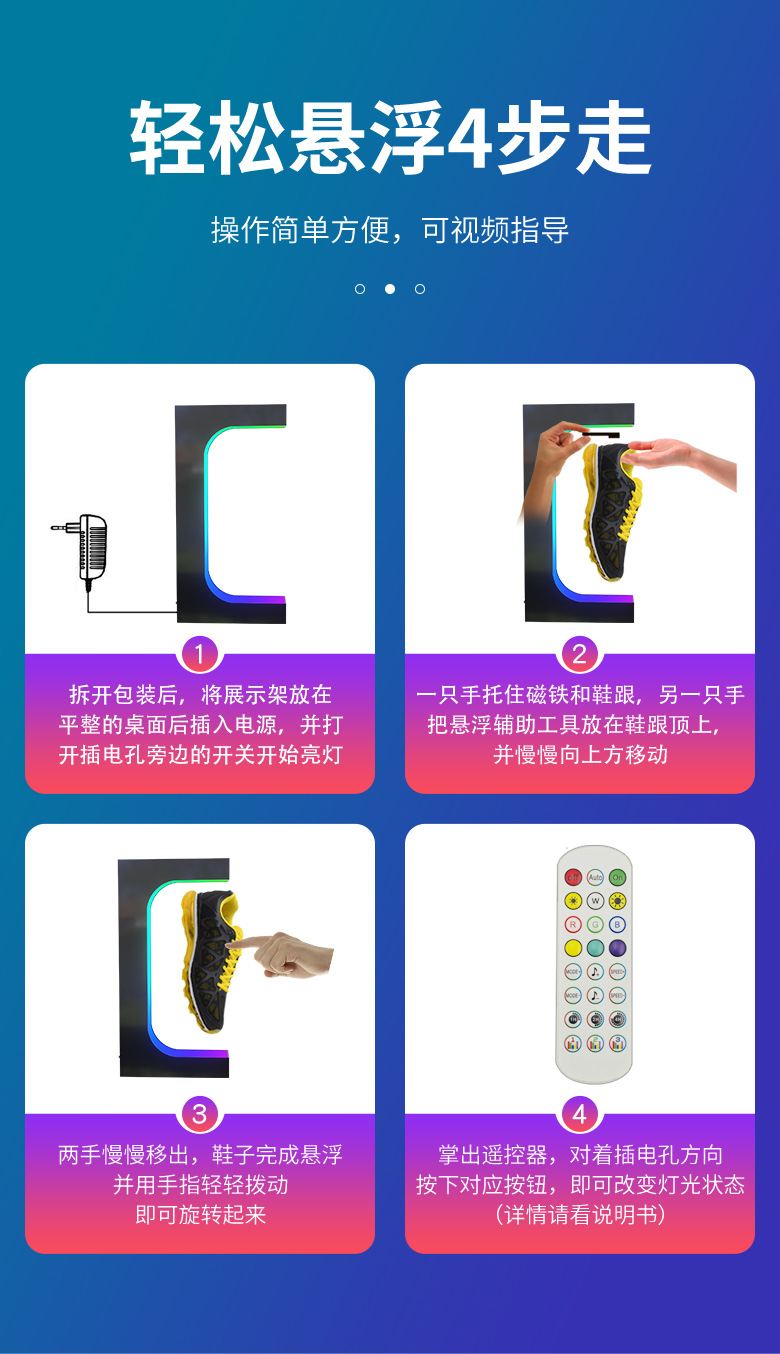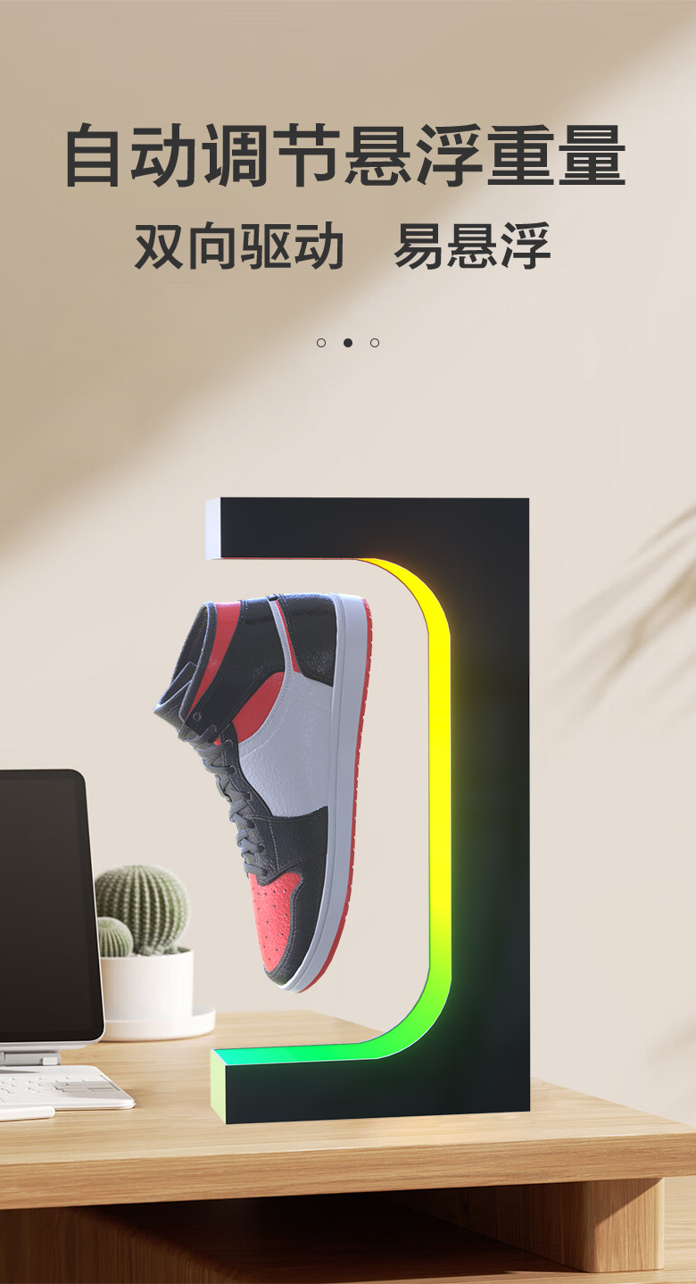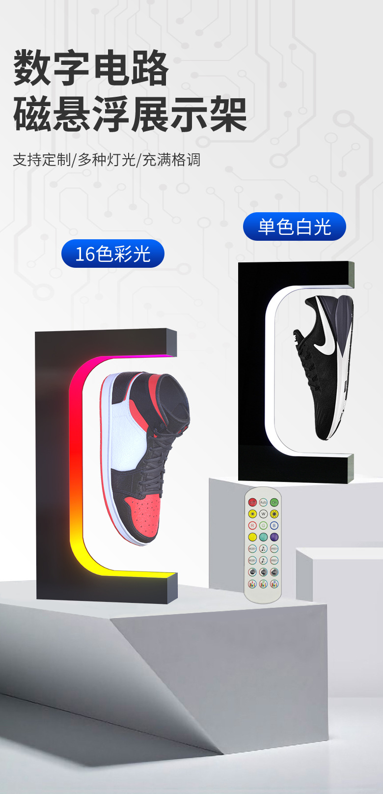 跨境磁悬浮鞋架球鞋磁悬浮展示台旋转发光亚克力磁悬浮鞋子展示架