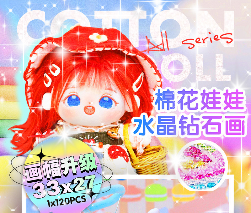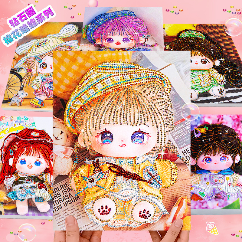 新款棉花娃娃DIY卡通钻石画儿童手工夜市摆摊十字绣厂家直销