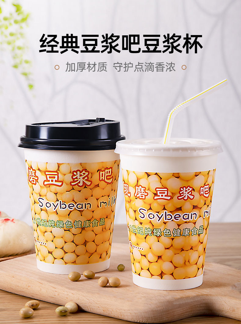 豆浆杯子批发定制做加厚带盖家商用早餐外卖打包杯一次性豆浆纸杯