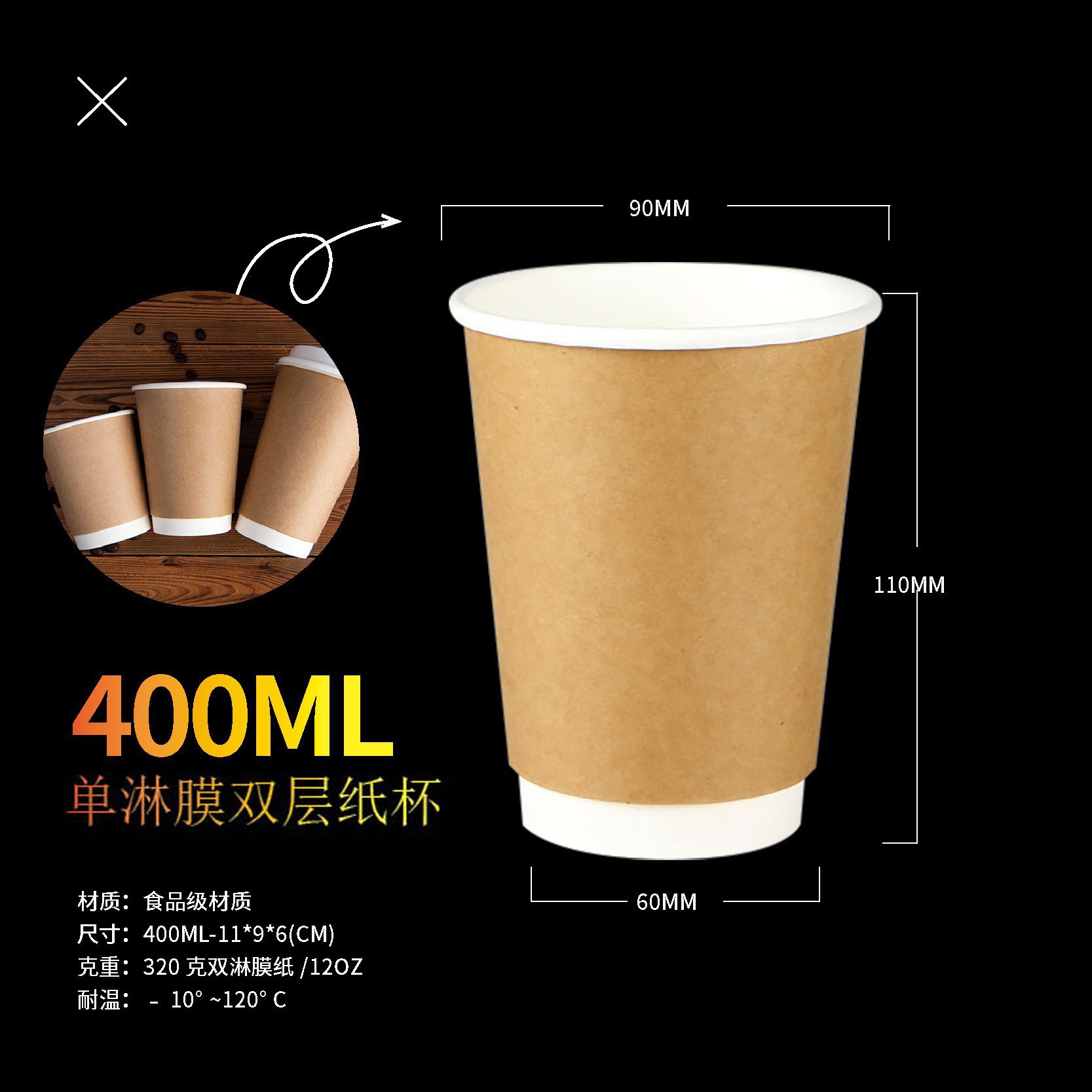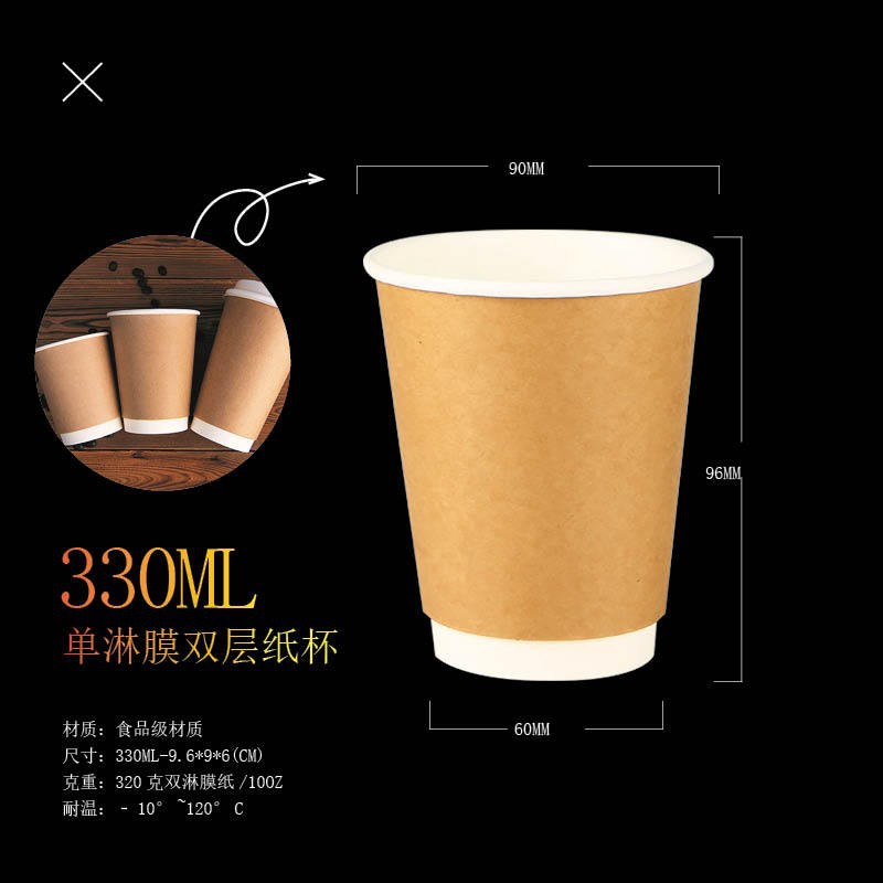双层牛皮纸杯一次性咖啡杯带盖商用奶茶杯咖啡杯豆浆加厚中空纸杯