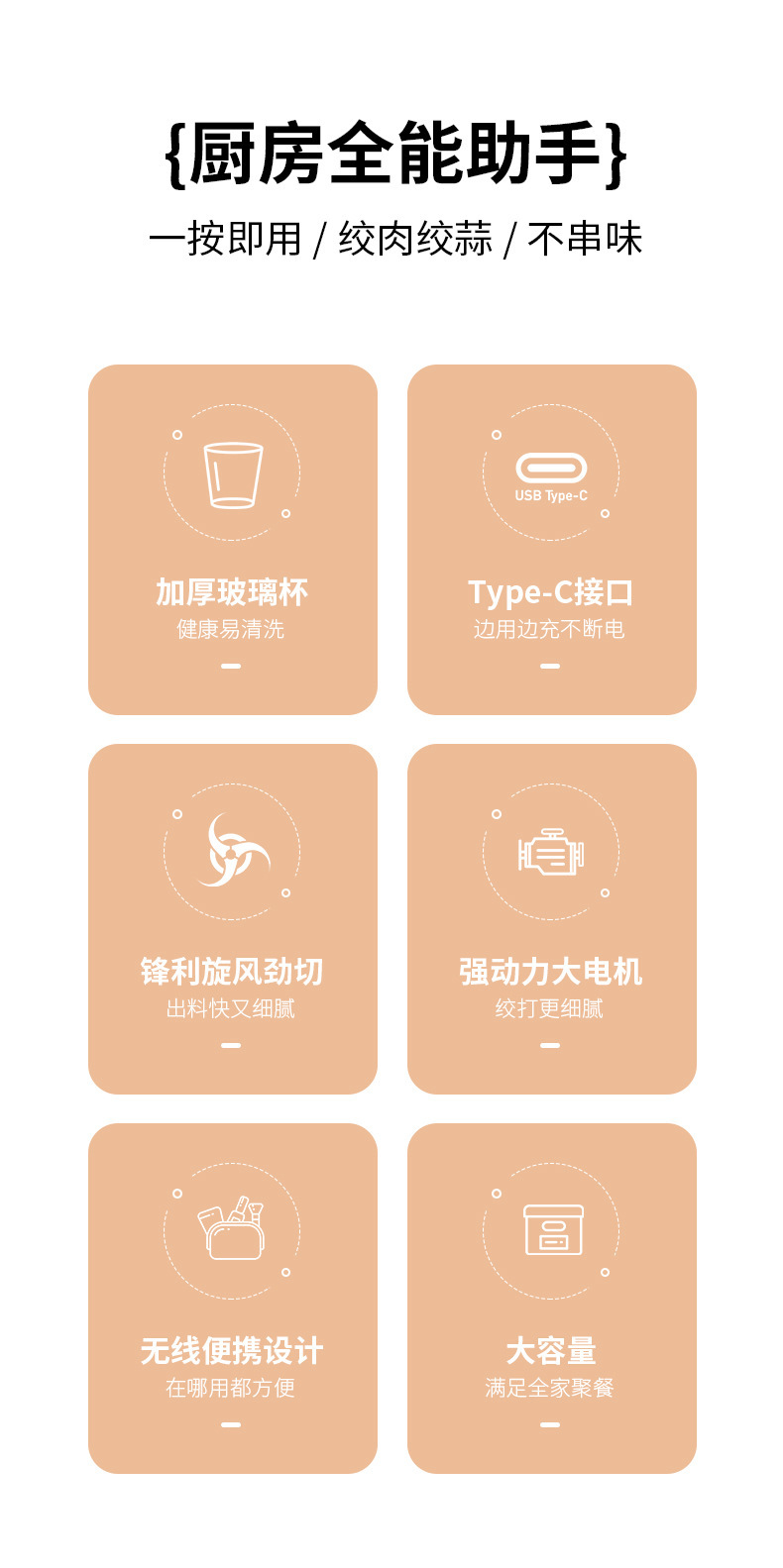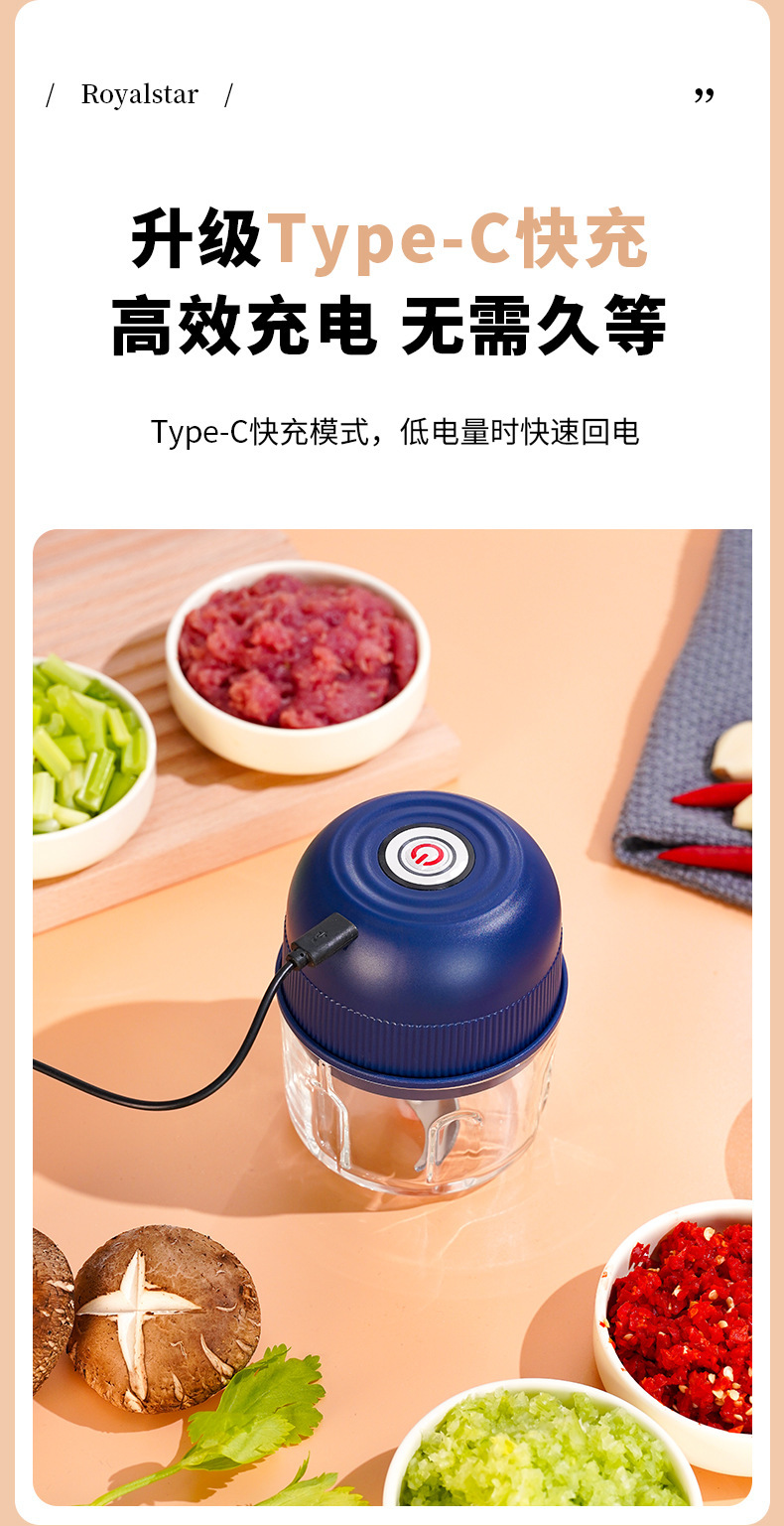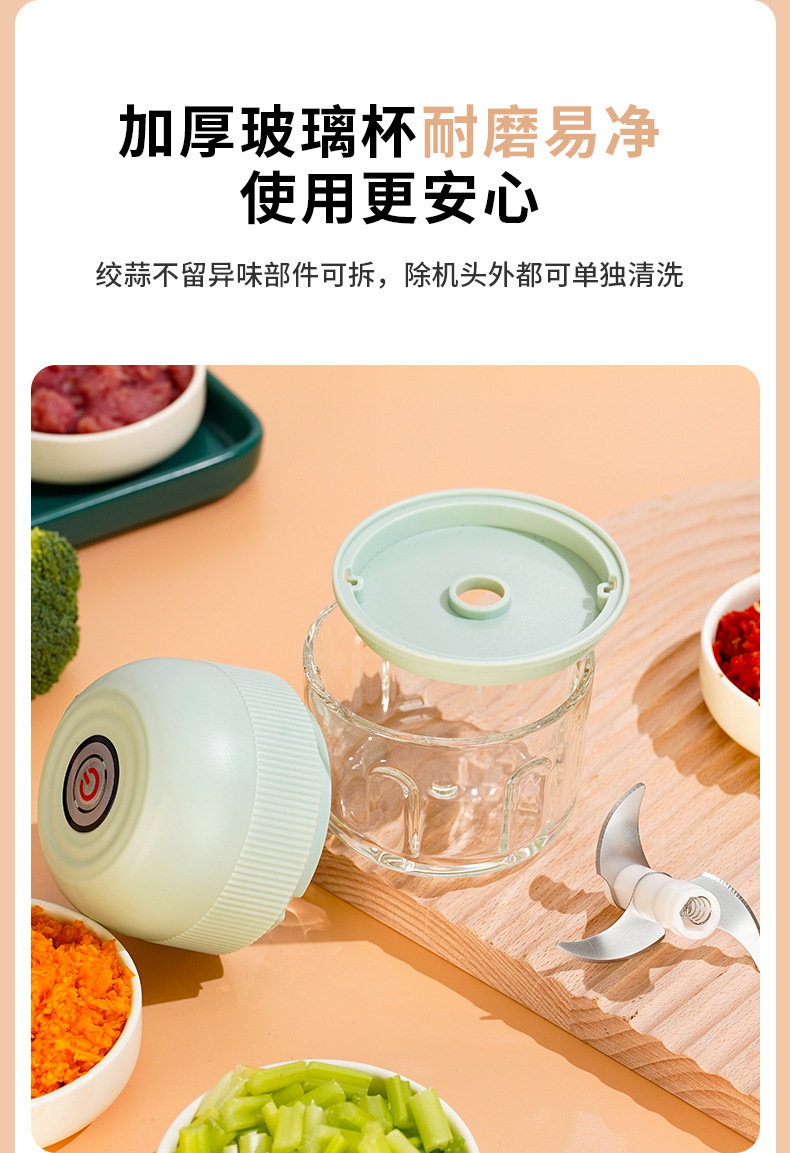 JLL7002迷你电动捣蒜器压蒜器Typec充电辅食料理机无线打蒜泥神器