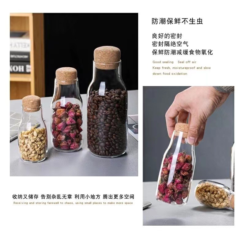 高硼硅玻璃储物罐家用干果杂粮茶叶收纳瓶软木塞咖啡豆 密封罐