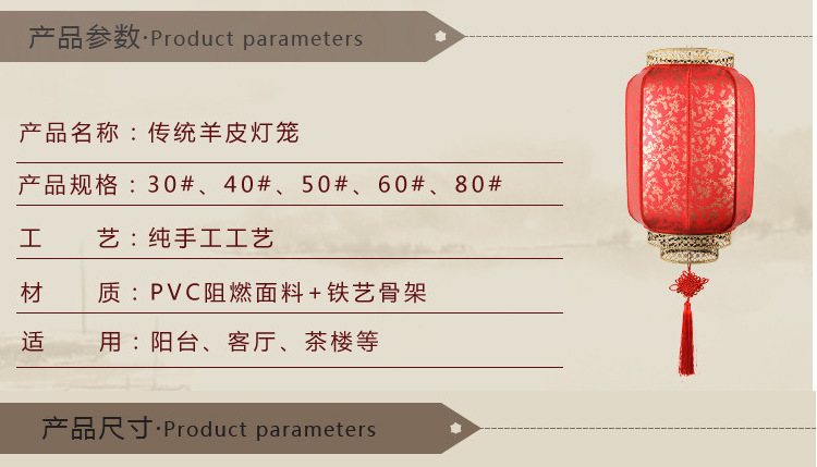 羊皮灯笼户外防水挂饰广告印字仿古中国风灯笼中式场景装饰宫灯