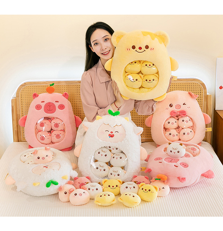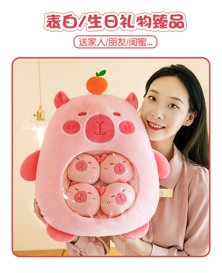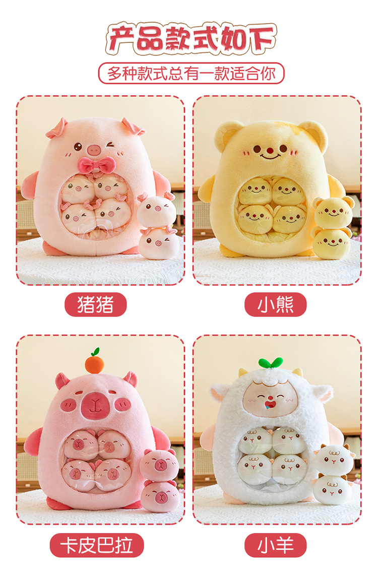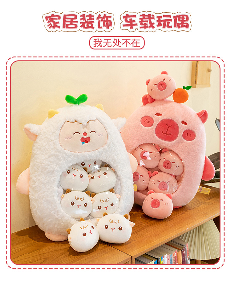 可爱卡皮巴拉水豚零食抱枕小羊公仔猪猪玩偶毛绒玩具生日礼物女孩