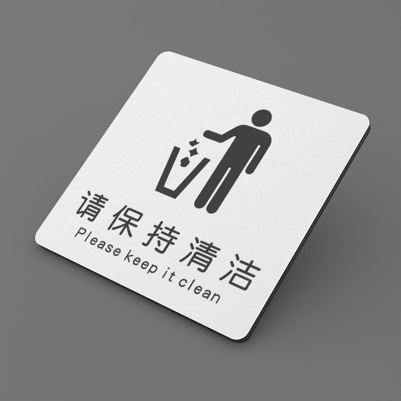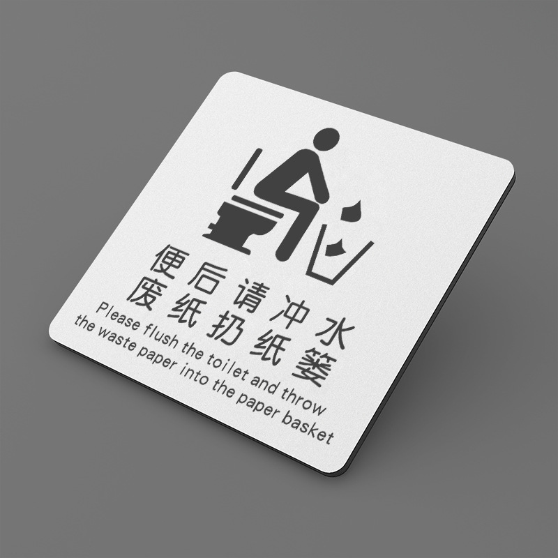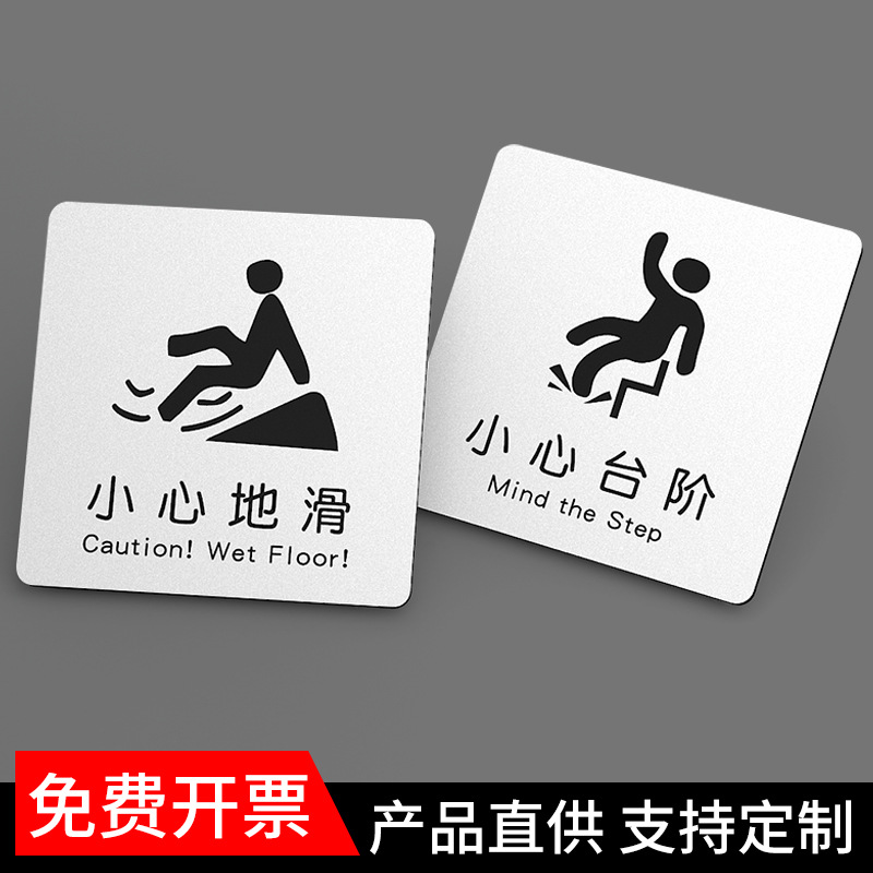 飞雪人铝塑板温馨提示牌 小心地滑禁止吸烟节约用水洗手间标识牌