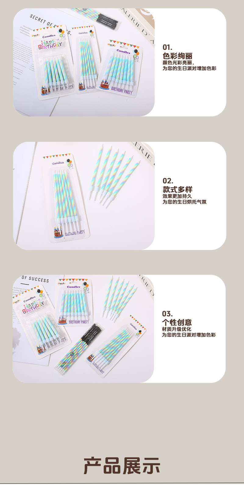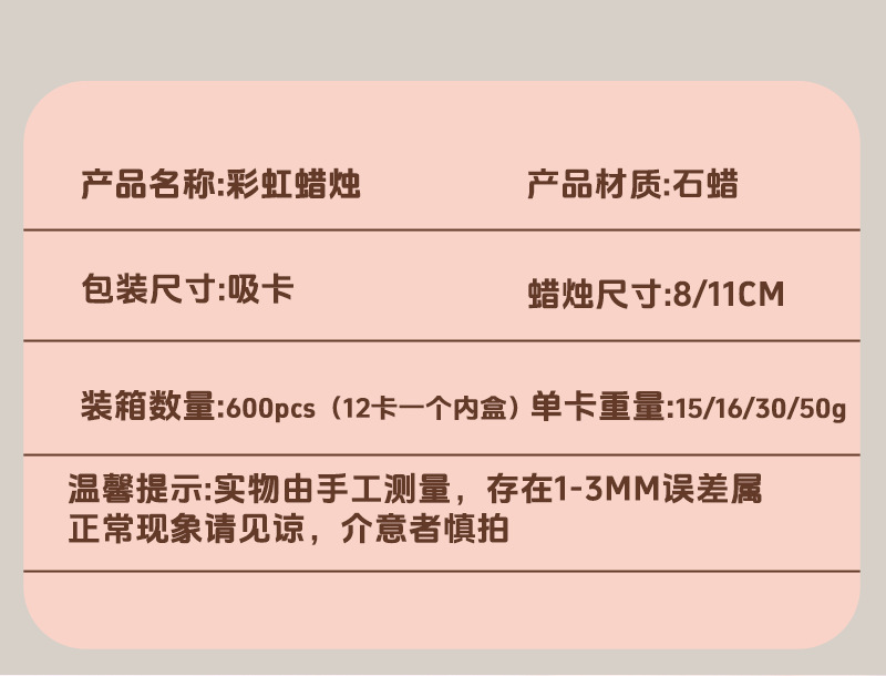 | 8 rainbow suction card candles(8支彩虹吸卡蜡烛) | USD $0.0 | 999999 card available |
