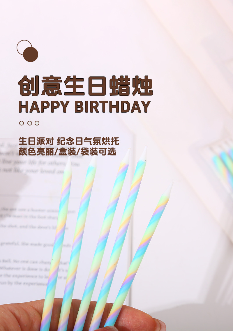 厂家批发生日蜡烛创意彩色蜡烛聚会派对浪漫烘焙装饰蛋糕螺纹蜡烛