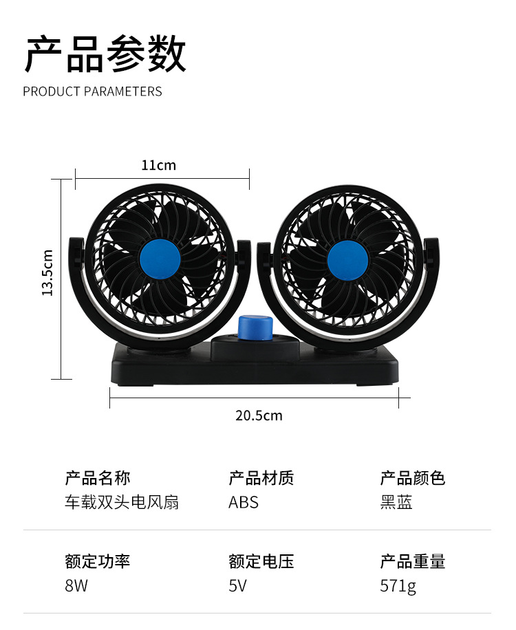 车载风扇大货车24v12v制冷小面包车双头车用强力汽车用散热电风扇