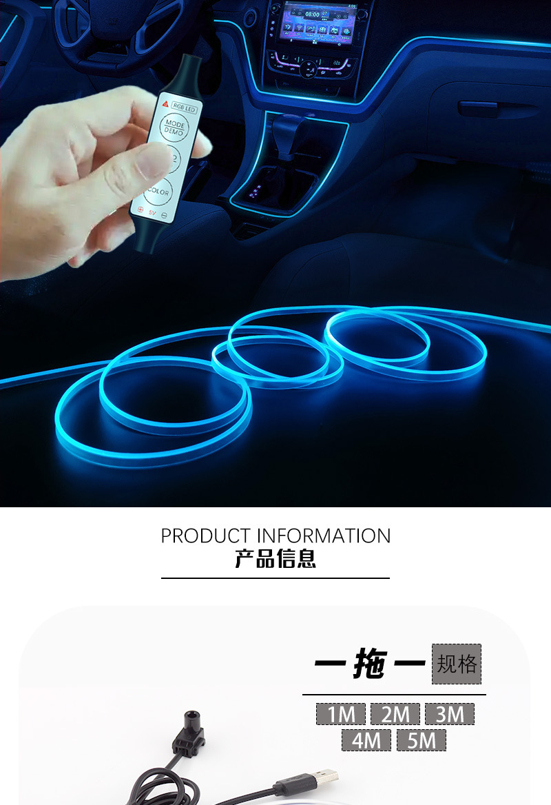 源头工厂EL冷光线七彩导光车载氛围灯条汽车氛围灯通用款式免安装