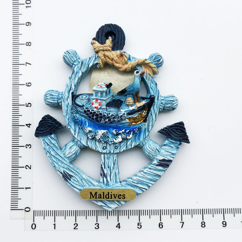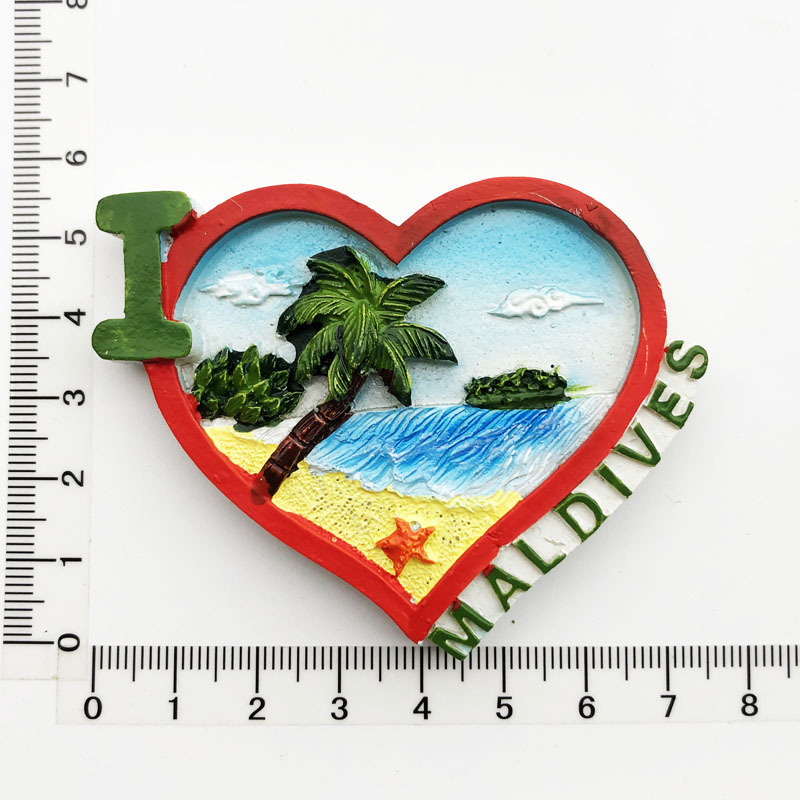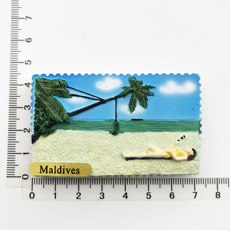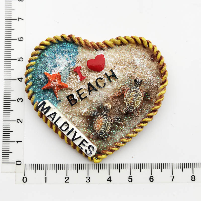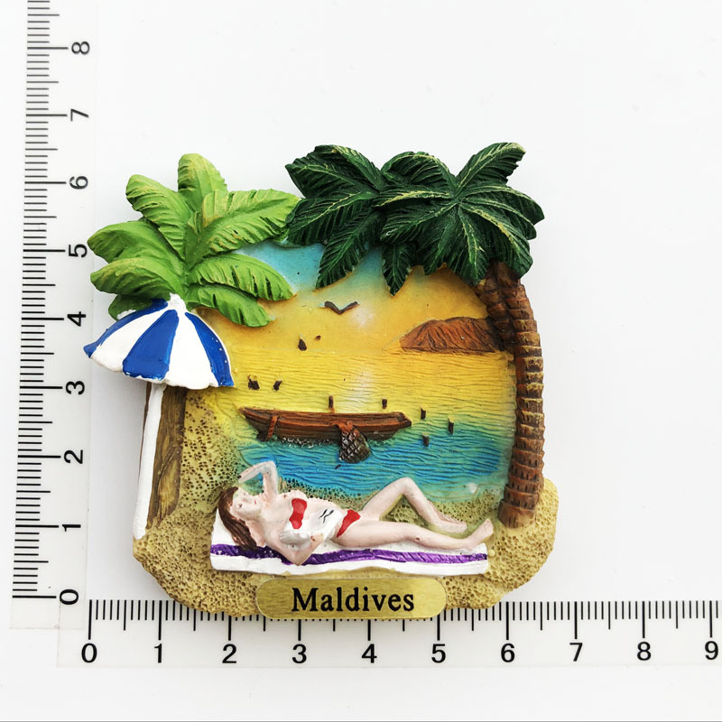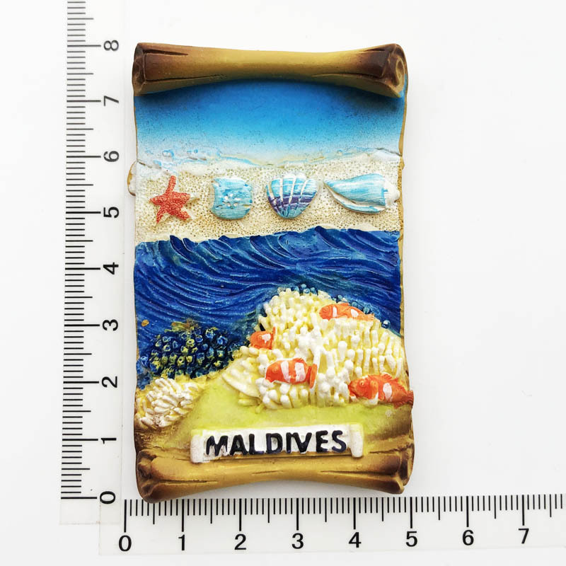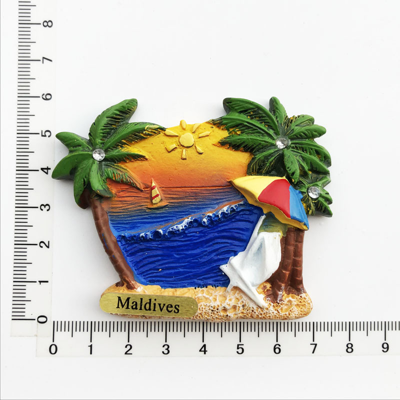 跨境货源现货马尔代夫海洋旅游纪念装饰工艺品树脂彩绘磁力冰箱贴
