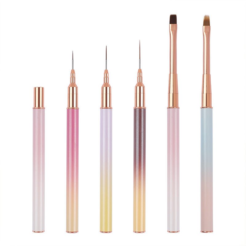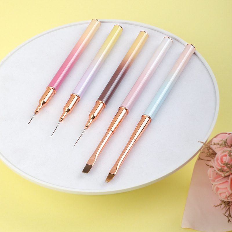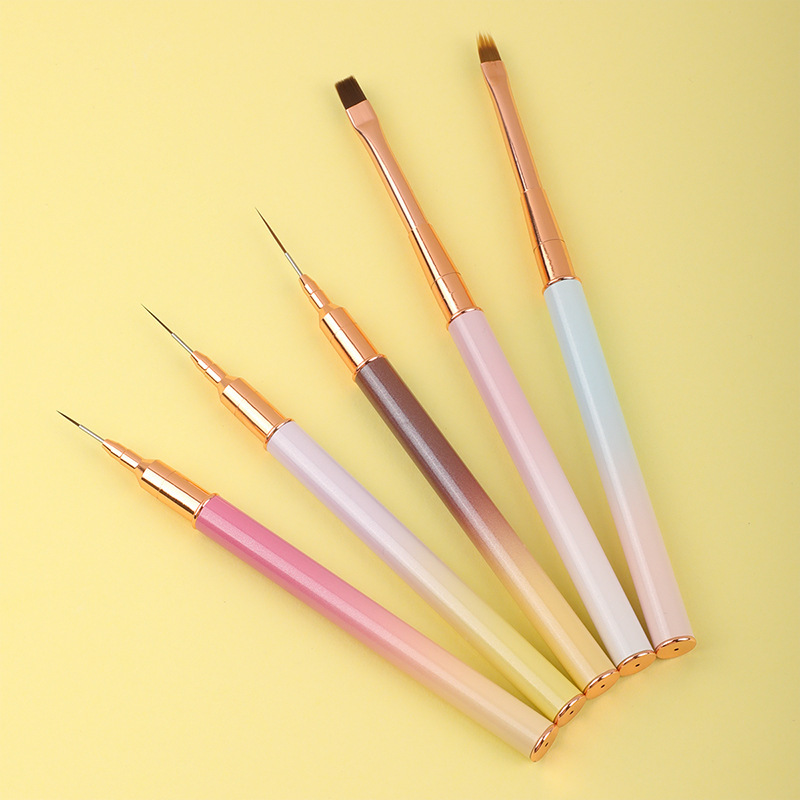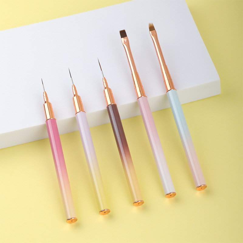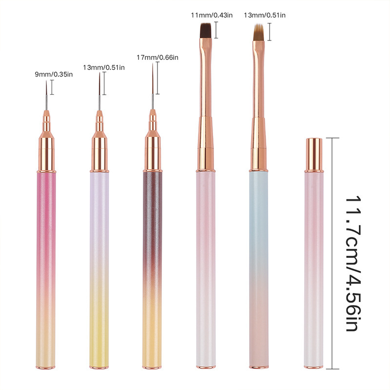 B378双色渐变闪粉短杆5支装美甲笔金属拉线笔光疗笔雕花美甲笔
