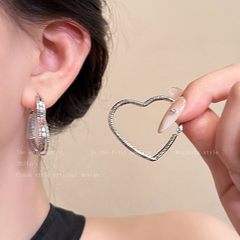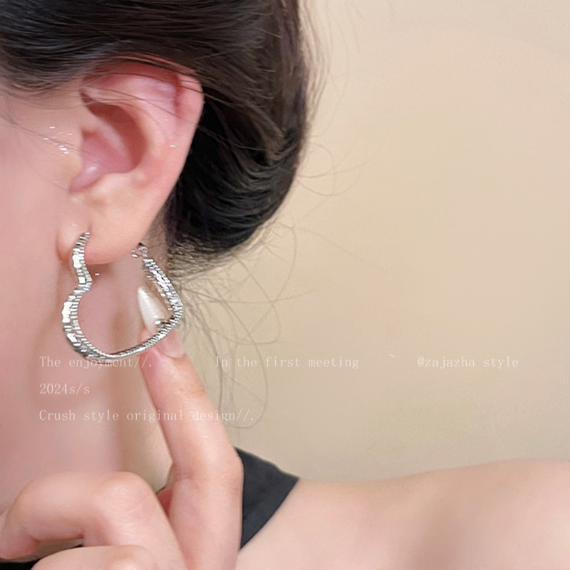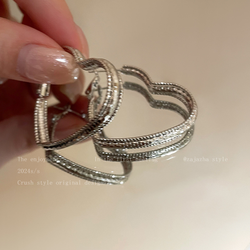 饰品韩系爆款高级感桃心耳钉网红同款耳饰小众多层爱心耳圈耳环女